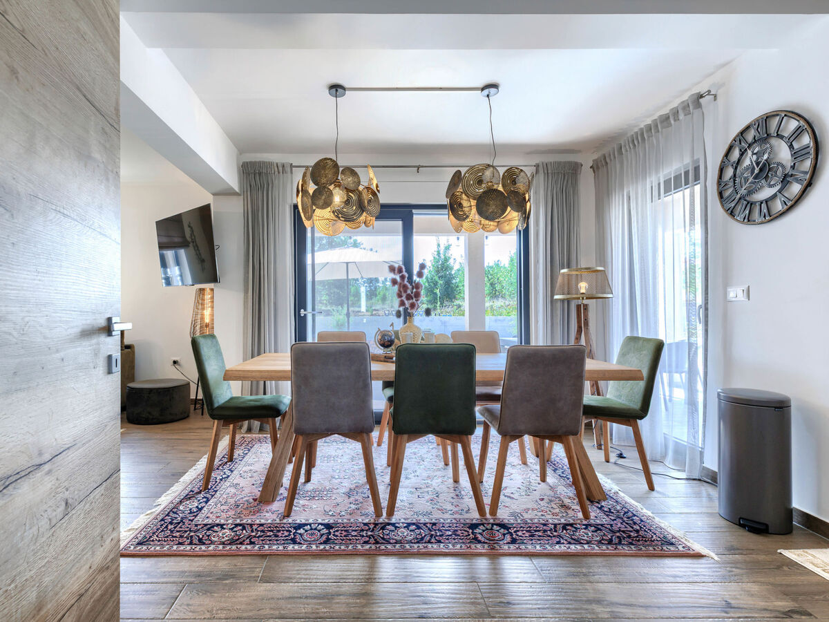 Cuisine ouverte (four, lave-vaisselle, 5 plaques à induction, grille-pain, bouilloire électrique, micro-ondes, congélateur, cafetière électrique).