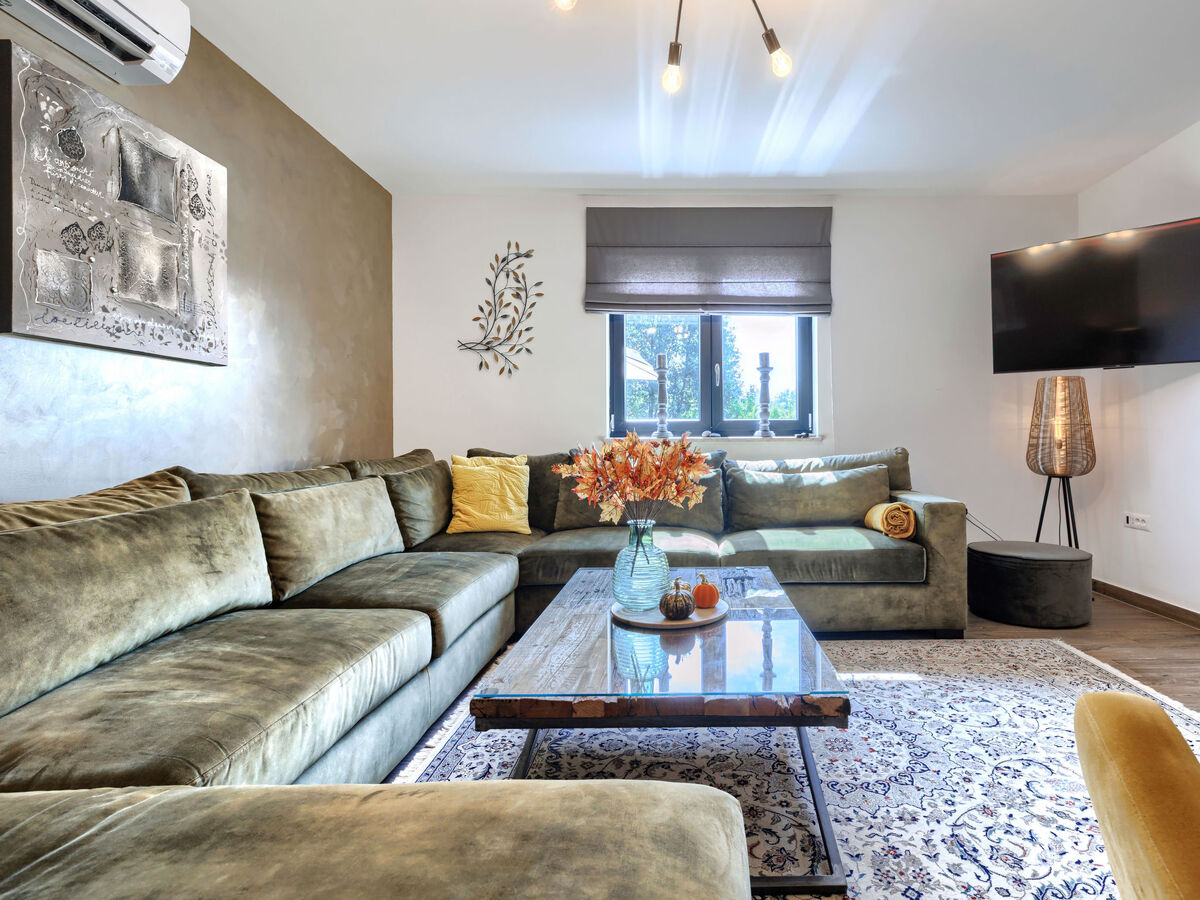 Aménagement agréable et plaisant: séjour/salle à manger avec cheminée (uniquement à titre de décoration), TV (satellite) et air-conditionné.