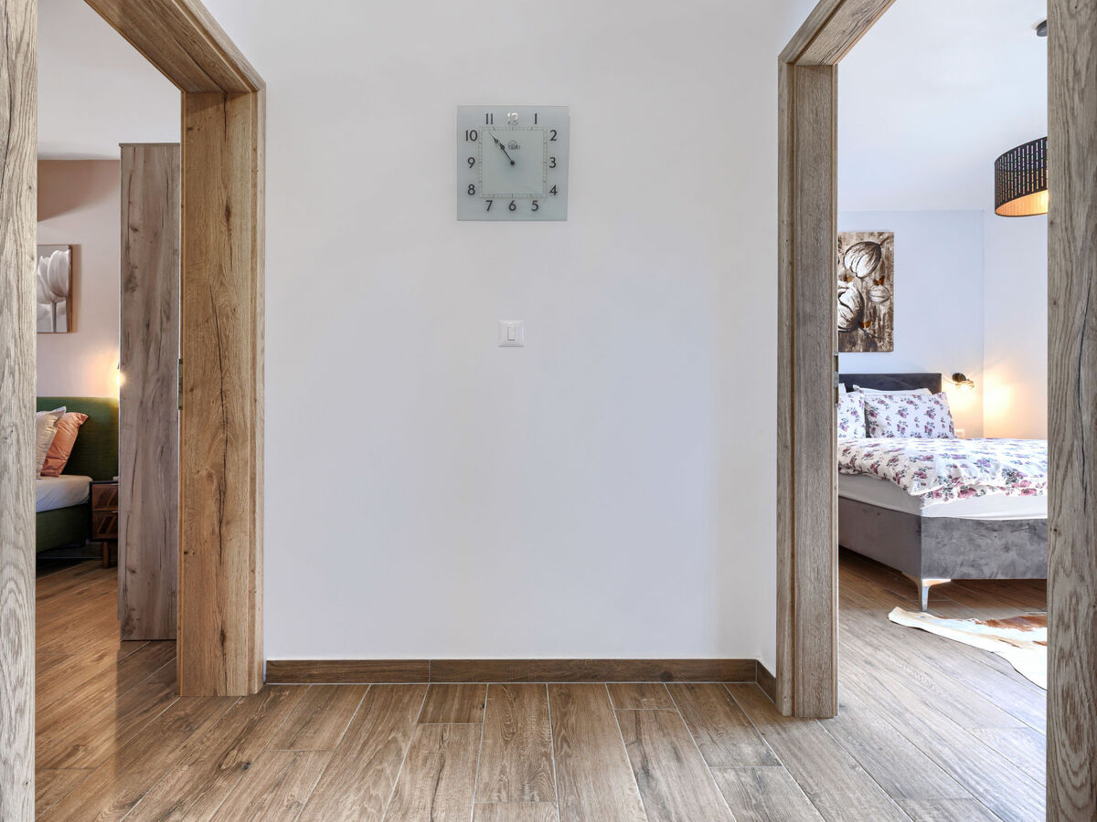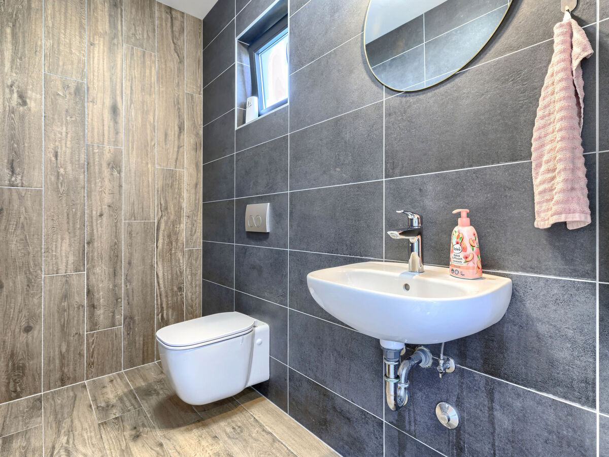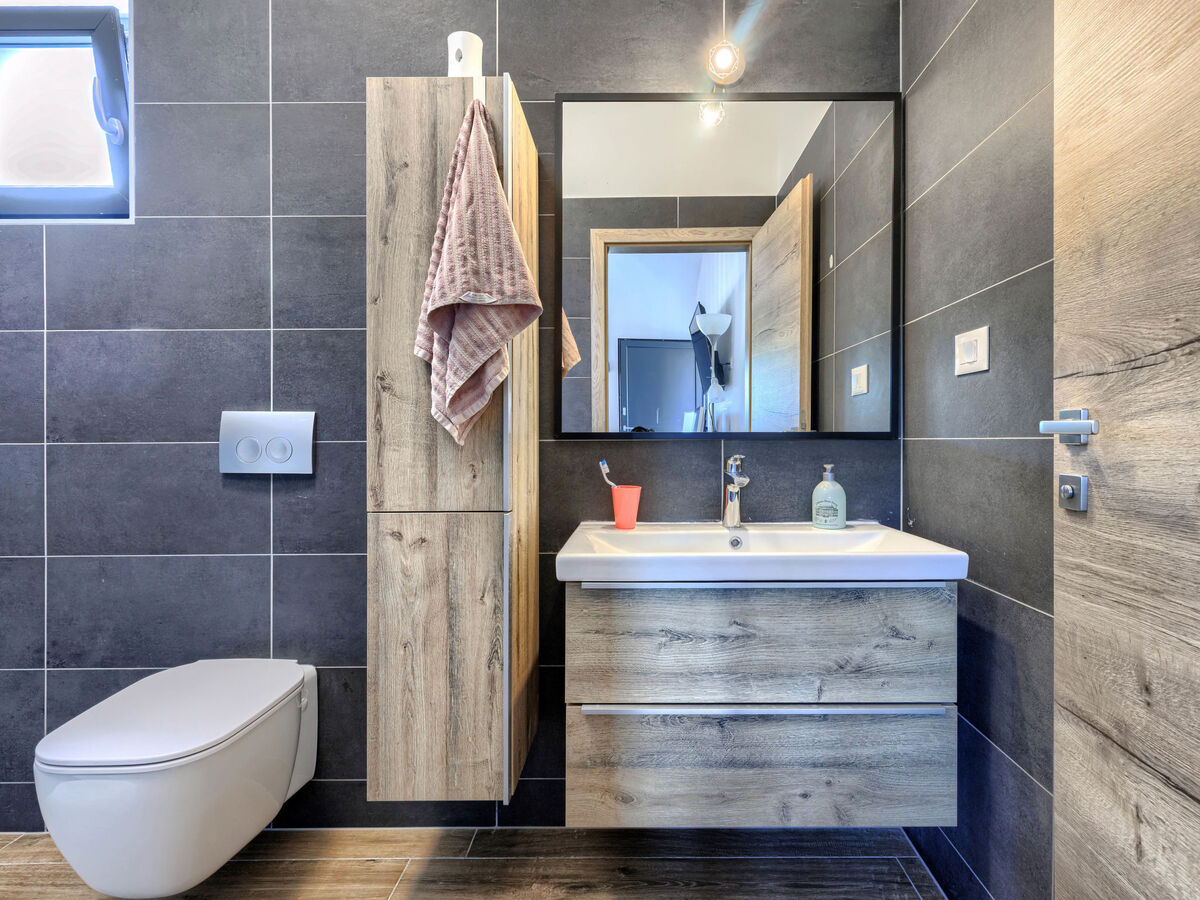 À l'étage supérieur: 1 chambre avec 1 grand-lit (140 cm, longueur 200 cm), TV (satellite) et air-conditionné.