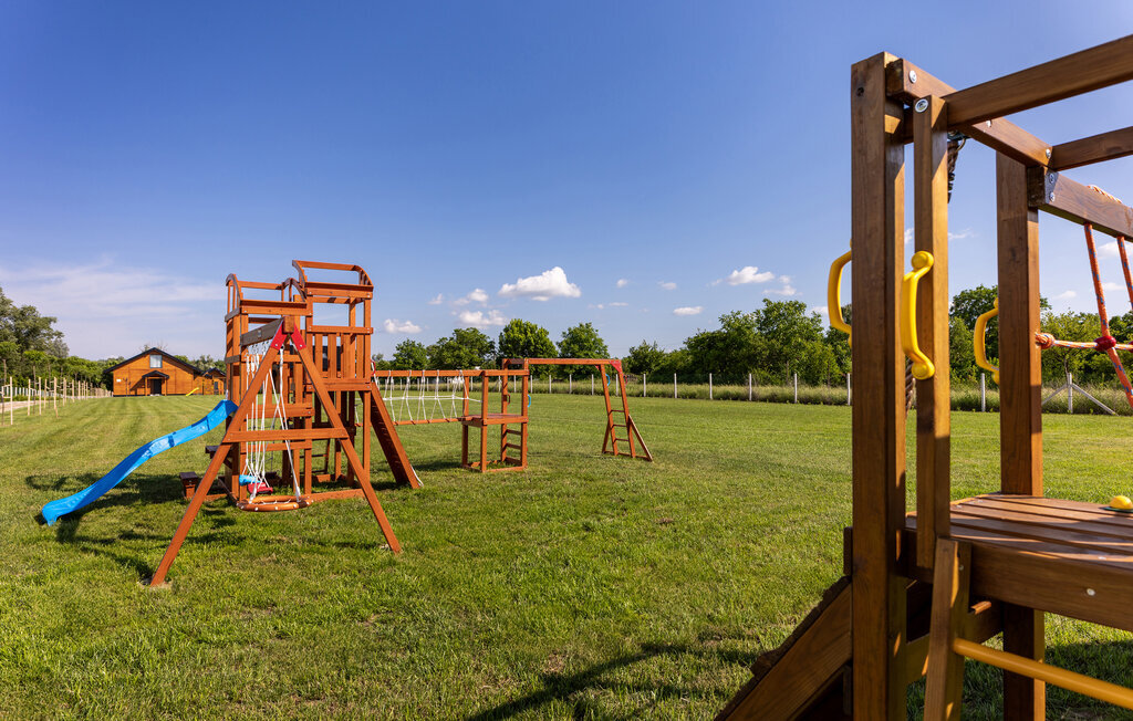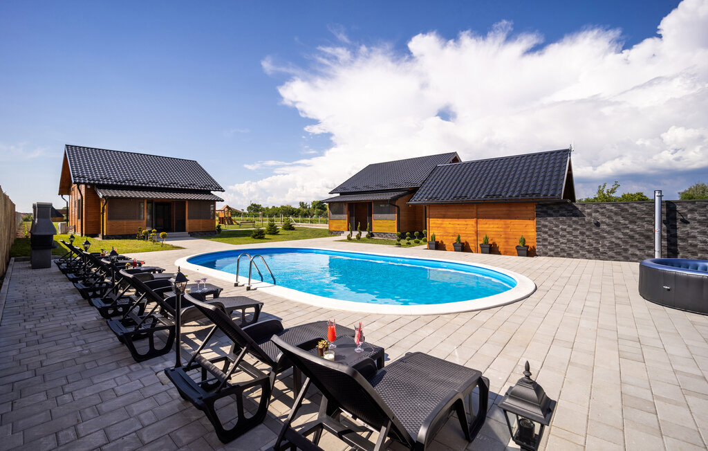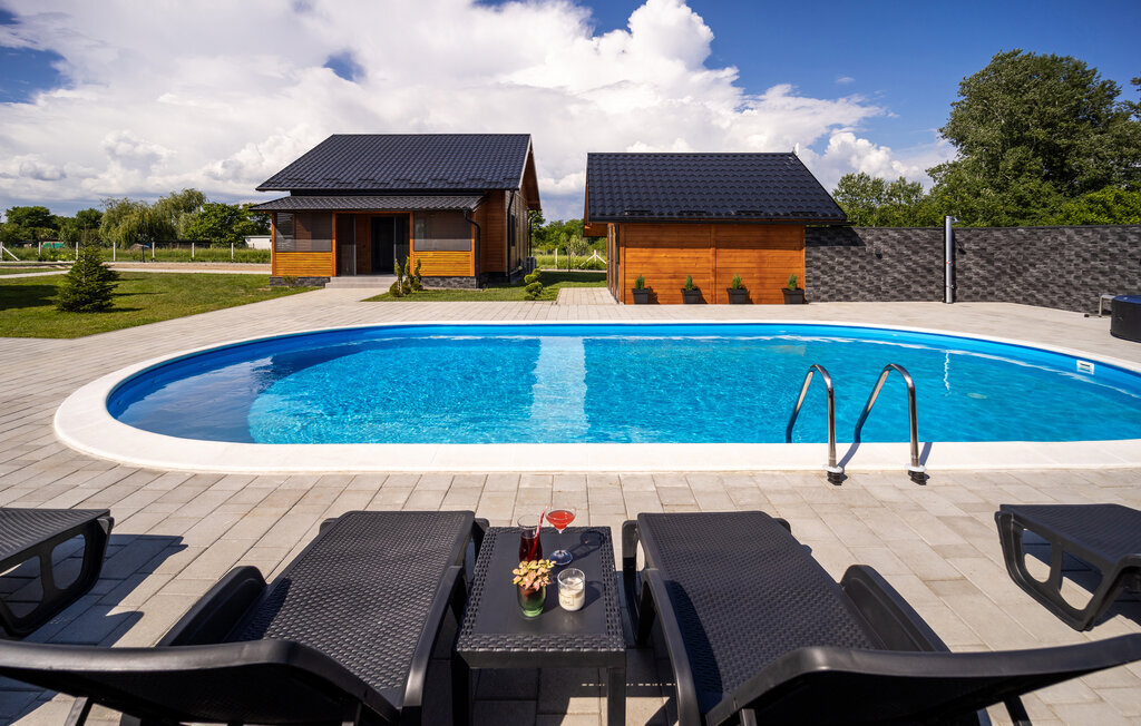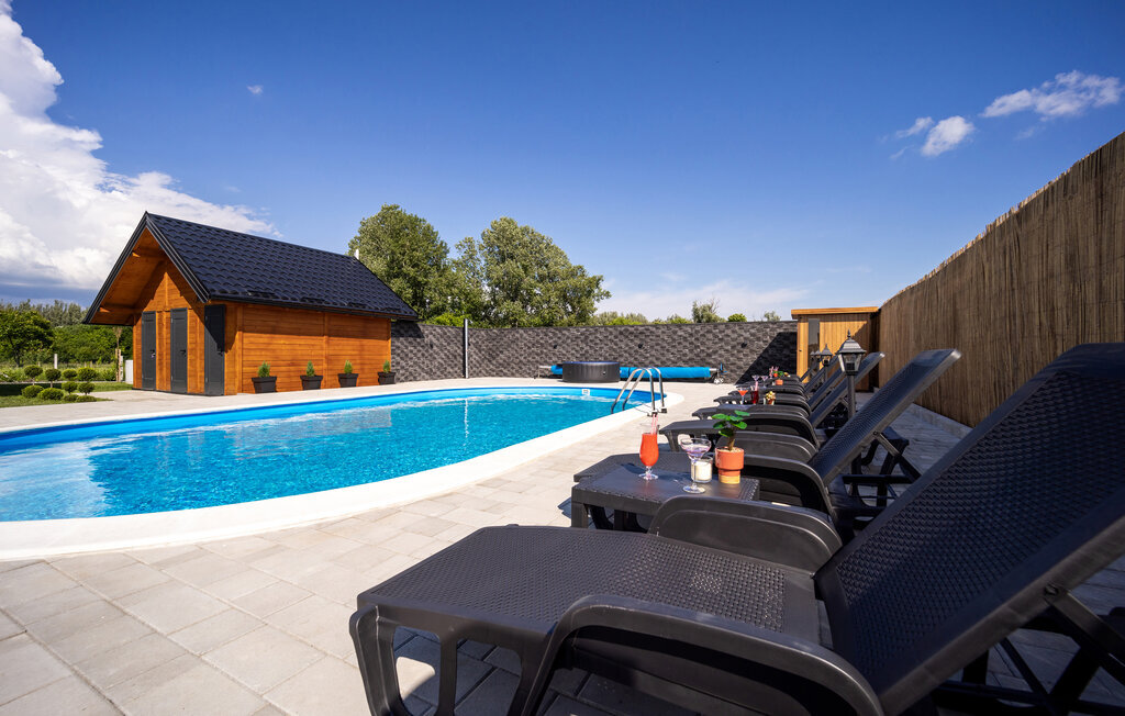 Échappez à la vie urbaine et à l'animation de la côte adriatique et passez des vacances reposantes non loin d'Osijek dans cette maison de vacances superbement équipée. Sur deux étages, vous pouvez vous sentir comme chez vous grâce au design et à l'aménagement de qualité. Cuisinez, mangez et jouez au rez-de-chaussée ou prenez votre café le matin sur votre véranda privée. Pendant ce temps, vos enfants peuvent jouer dans le jardin commun ou se baigner dans la piscine commune et passer des journées de vacances en se faisant de nouveaux amis.