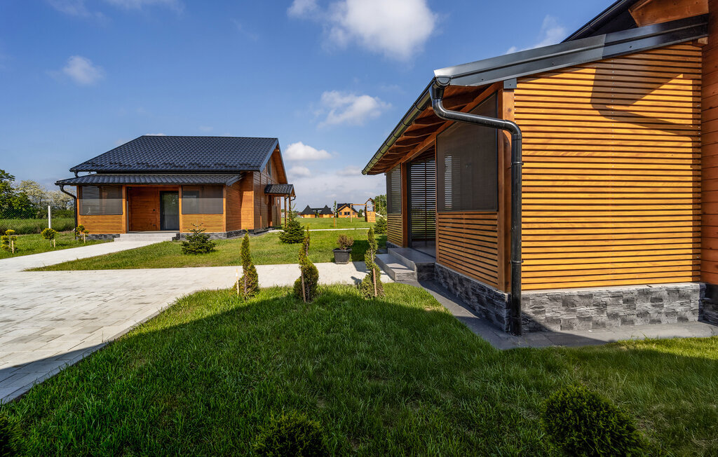A proximité du parc naturel Kopacki rit, cette maison en bois confortable et moderne avec un beau jardin commun vous accueille.