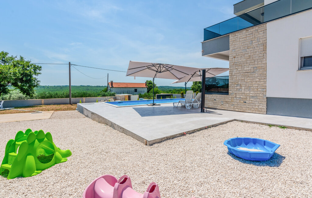 Vous pouvez vous retirer seul sur le balcon pour lire un livre, tandis que la grande terrasse avec piscine vous invite à vous détendre et à profiter de la vie. Le jardin avec son aire de jeux est un paradis pour vos enfants, qui peuvent s'y ébattre en toute insouciance. Imaginez-vous vous réveillant le matin, commençant la journée par un bain rafraîchissant dans la piscine et profitant ensuite du soleil sur la terrasse - des vacances de rêve vous attendent.