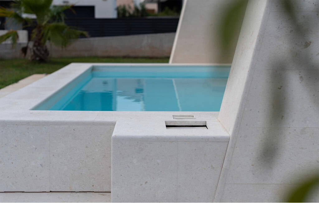 Maison de vacances moderne et à l'architecture attrayante avec piscine et vue sur la mer.