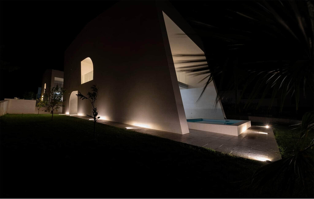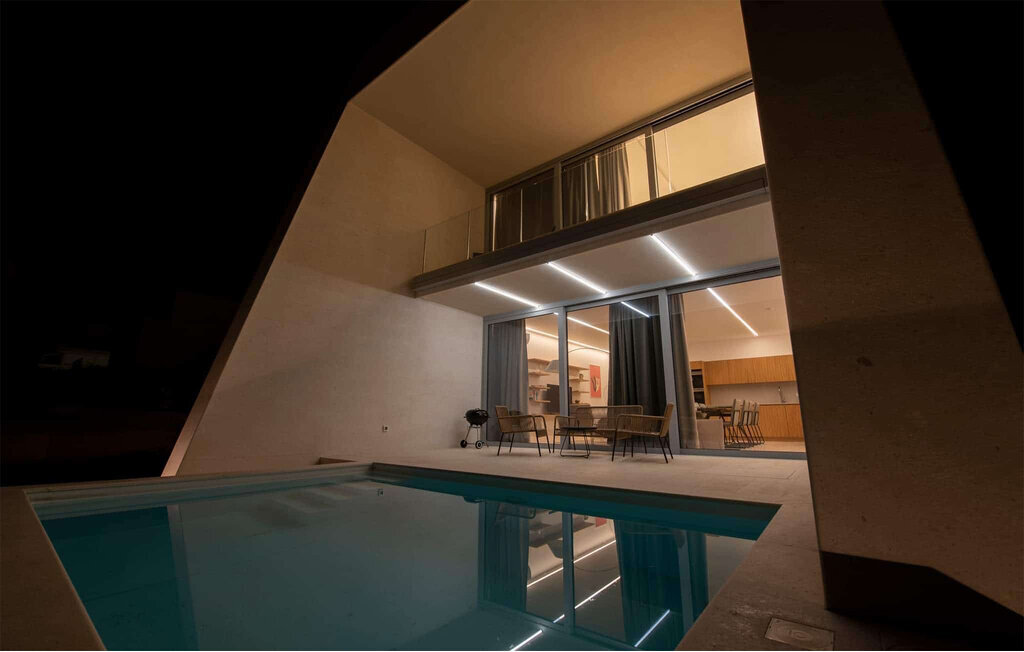Maison de vacances moderne et à l'architecture attrayante avec piscine et vue sur la mer.