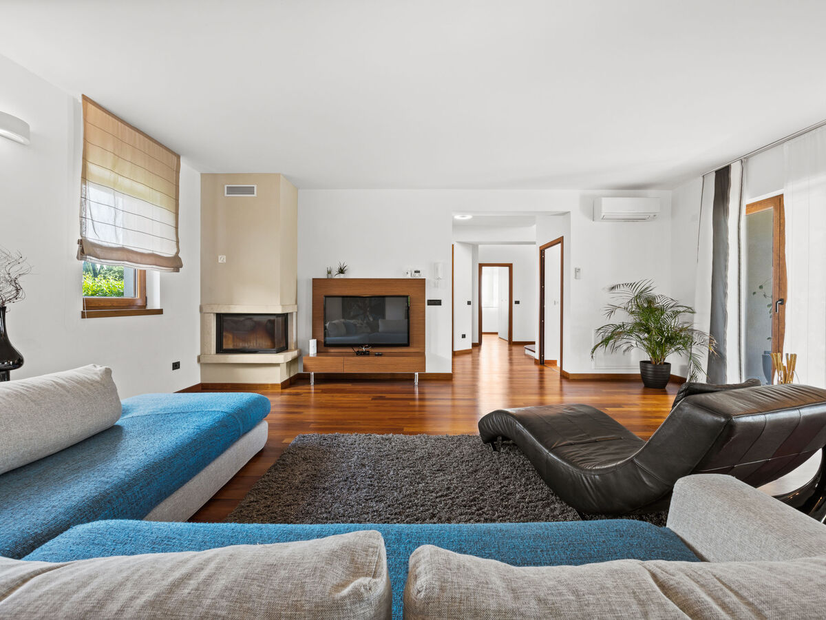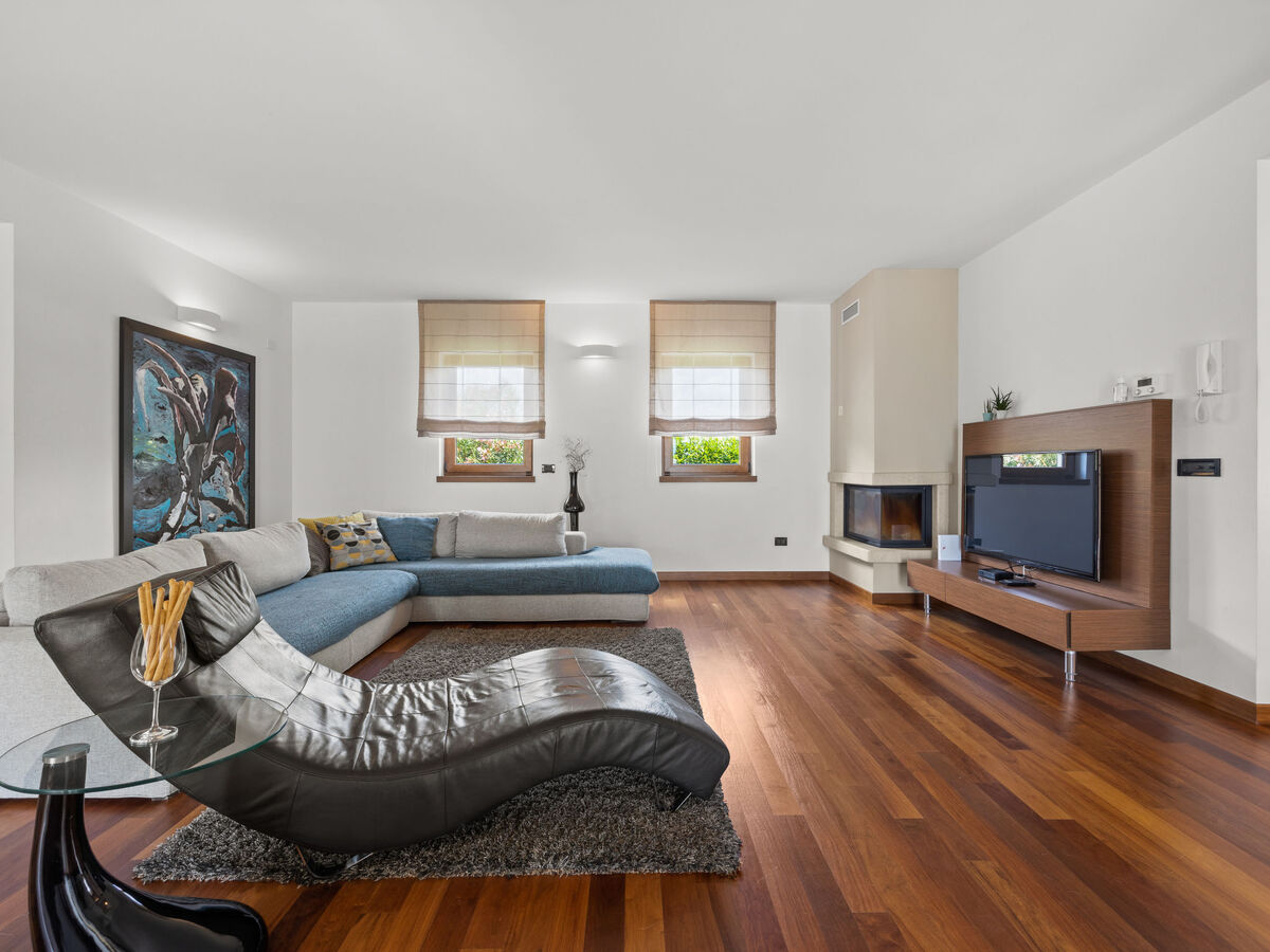 À l'étage inférieur: séjour/salle à manger avec cheminée (uniquement à titre de décoration), TV (satellite) (écran plat).