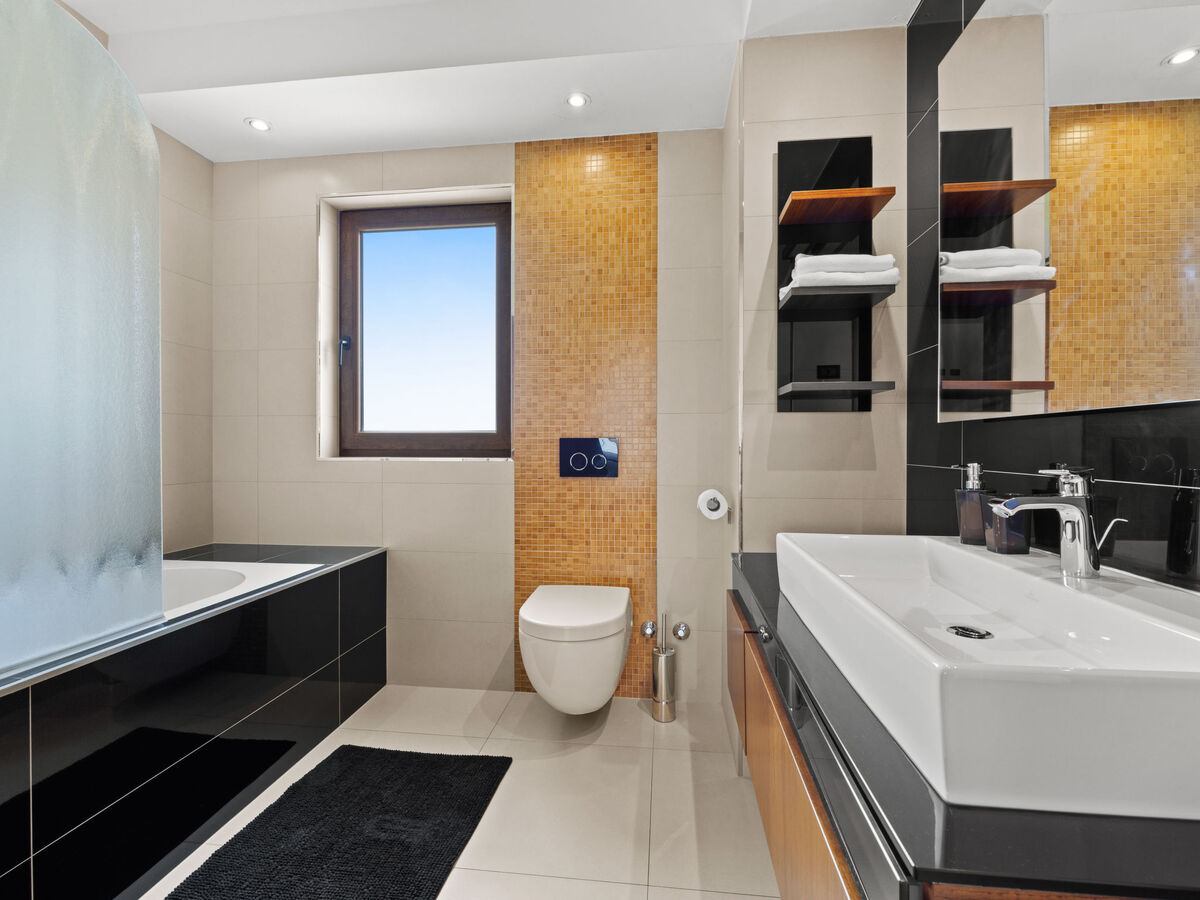 À l'étage supérieur: 1 chambre avec 1 lit (80 cm, longueur 190 cm), 1 lit double (2 x 90 cm, longueur 200 cm), douche/WC et air-conditionné.