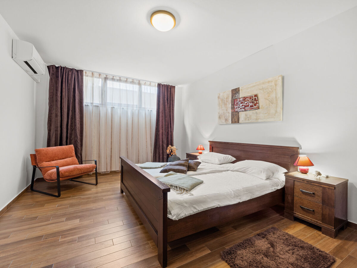 1 chambre avec 1 divan-lit (80 cm, longueur 190 cm), 1 lit double (2 x 80 cm, longueur 200 cm), air-conditionné.