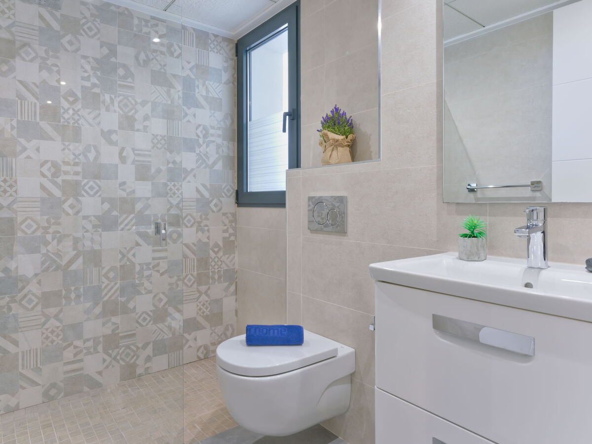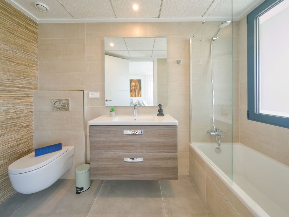 1 chambre avec 1 grand-lit (160 cm, longueur 200 cm), douche/bidet/WC, TV (satellite), air-conditionné et chauffage à air chaud.