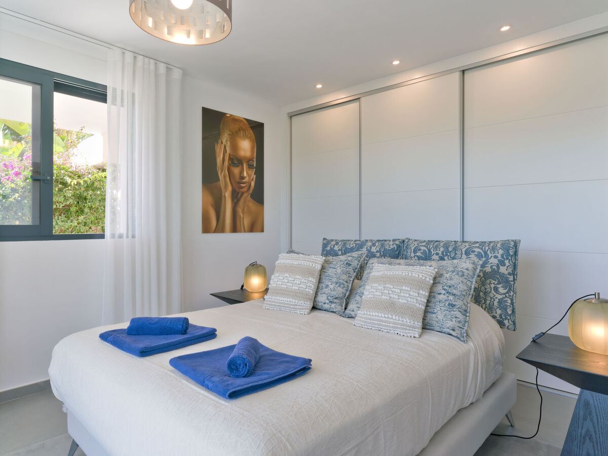 1 chambre avec 1 grand-lit (150 cm, longueur 200 cm), bain/WC, air-conditionné et chauffage à air chaud.