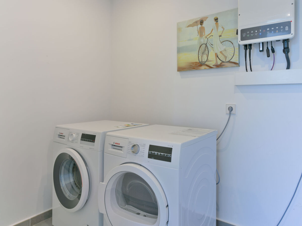 A disposition: lave-linge, sèche-linge, fer à repasser, chaise haute pour enfant, lit bébé, sèche-cheveux.