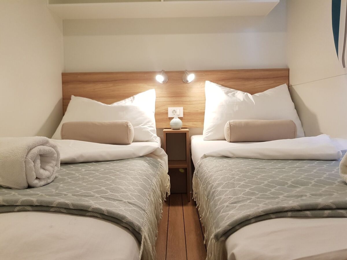 2 chambres, chaque chambre avec: 2 lits (80 cm, longueur 200 cm).