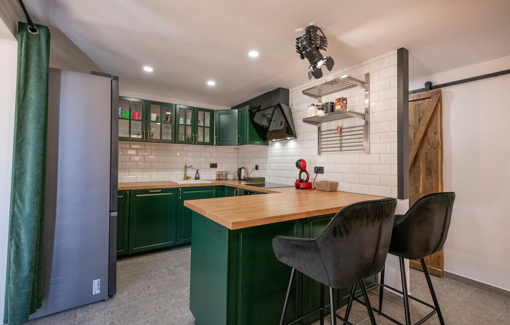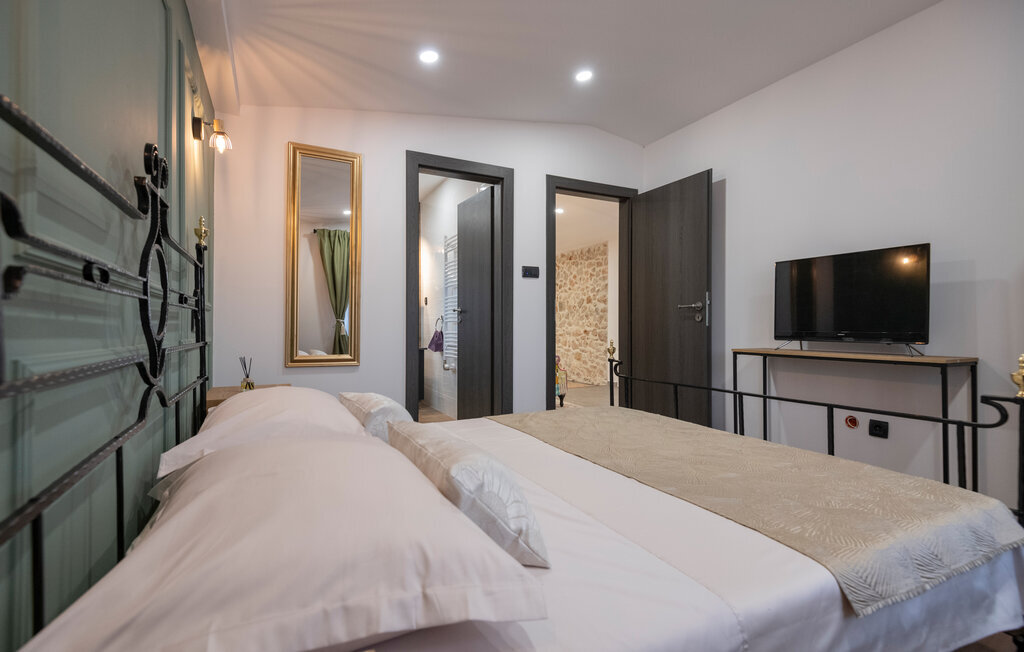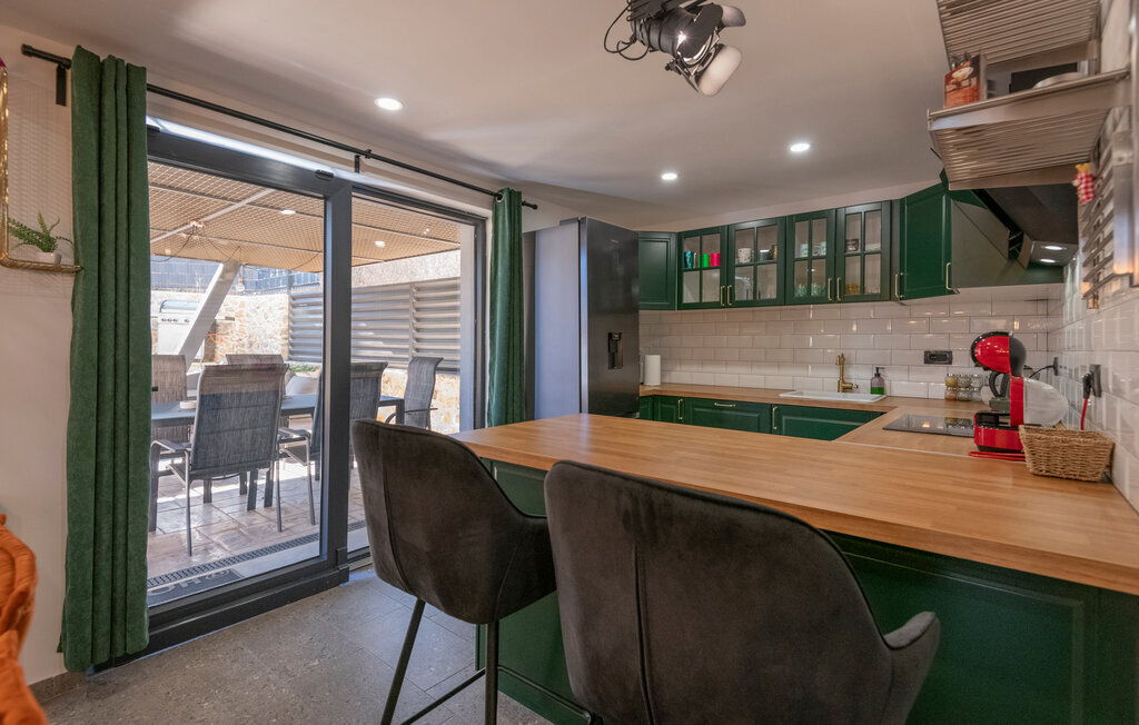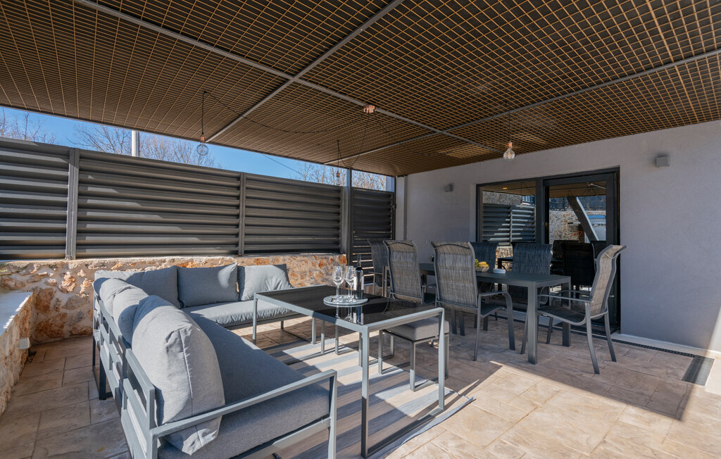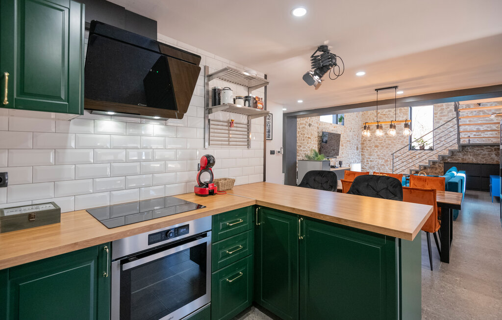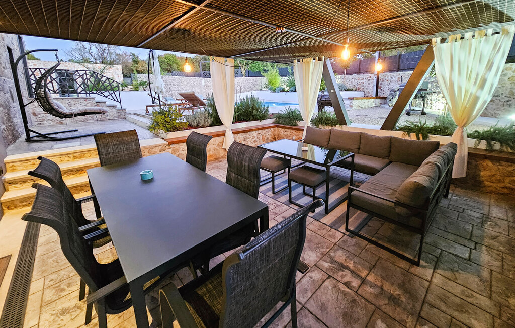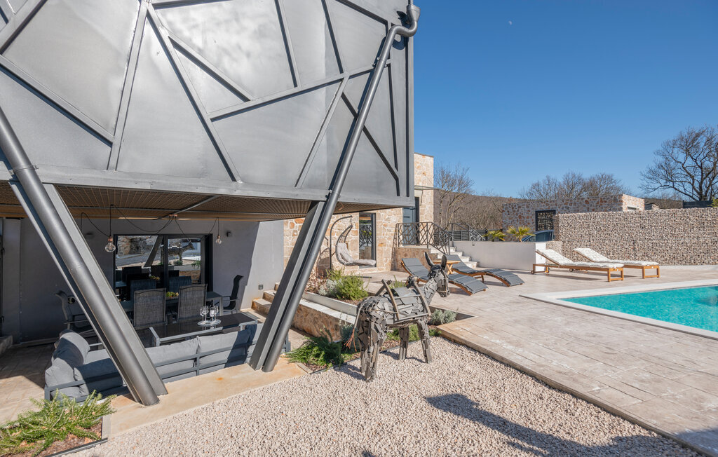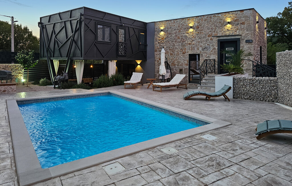 Cette luxueuse maison de vacances, située dans l'arrière-pays verdoyant de la côte dalmate, allie tradition et confort contemporain. Dans cette belle retraite, vous passerez des vacances uniques avec toute la famille. Commencez vos journées de vacances en préparant un copieux petit déjeuner, tout en faisant des plans pour explorer les attractions de votre région de vacances. Les équipements modernes, les accents colorés et les éléments décoratifs muraux confèrent à la maison une atmosphère très particulière. L'aménagement ouvert favorise les réunions de famille. Détendez-vous dans le salon confortable, jouez à un jeu sur la console de jeux et dînez ensemble autour de la belle table à manger. À l'extérieur, l'espace extérieur bien entretenu avec piscine, chaises longues confortables et jeux pour les enfants vous séduira.