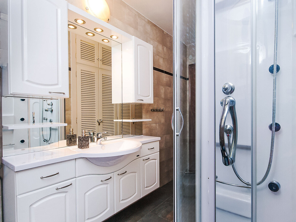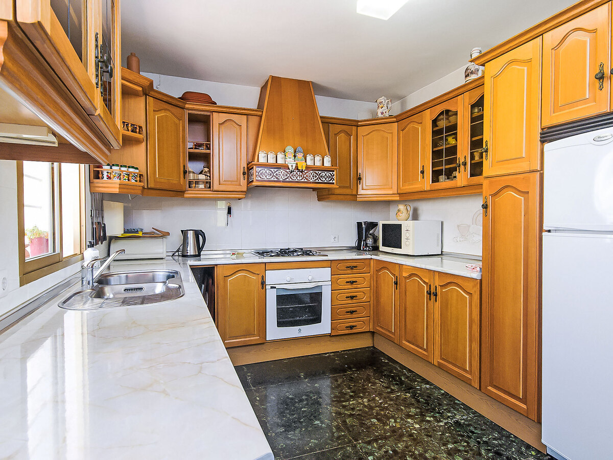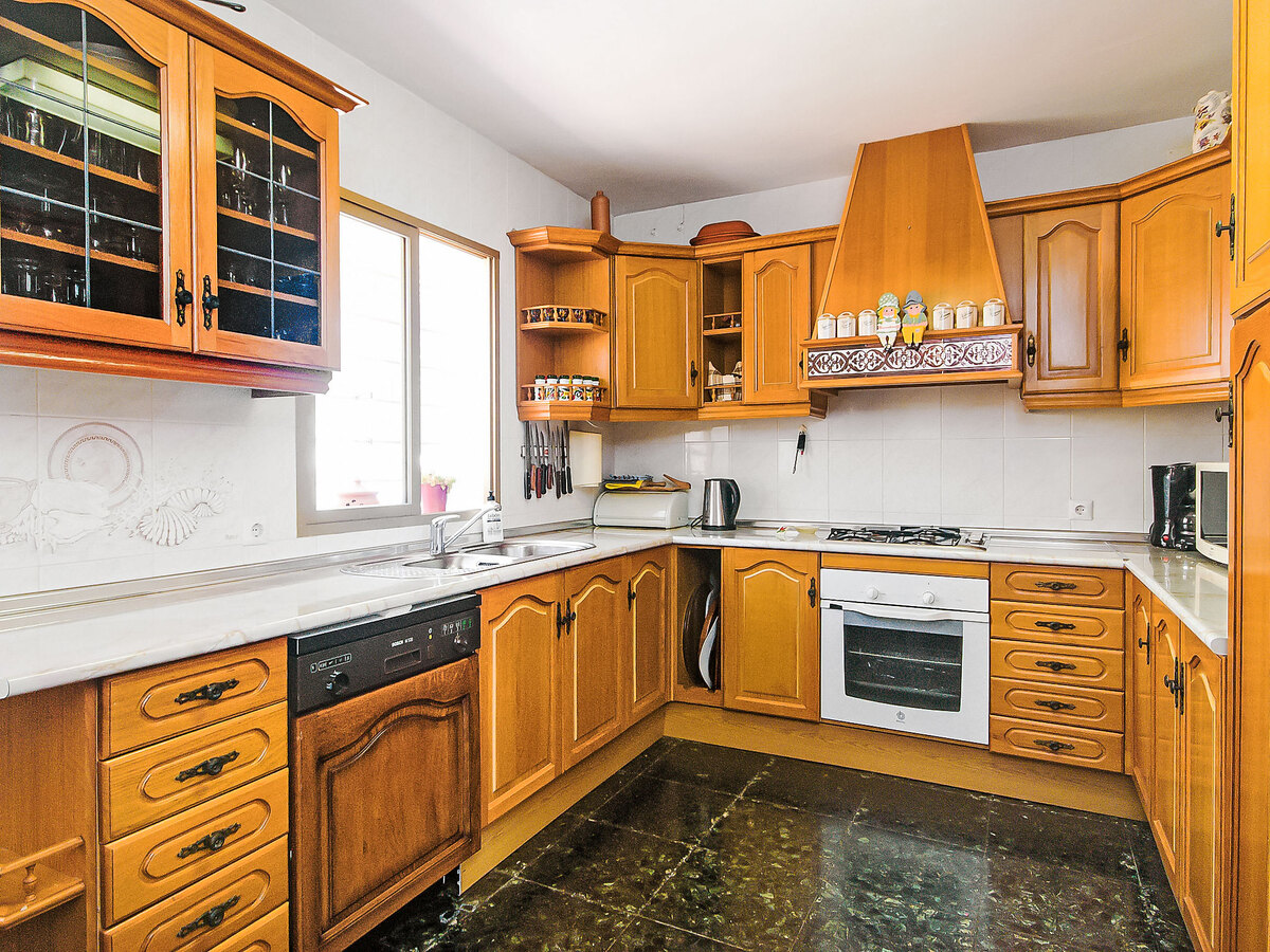 La cuisine est équipée d'un four, un lave-vaisselle, un congélateur et une cafetière électrique.