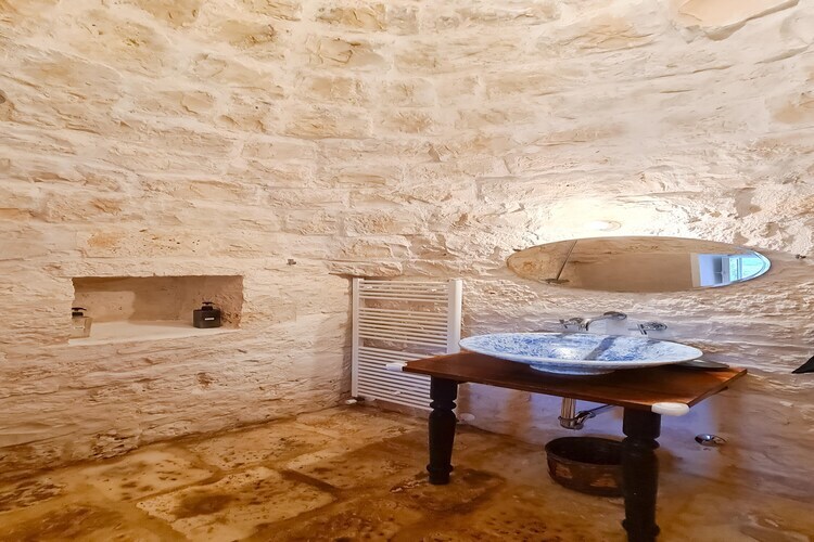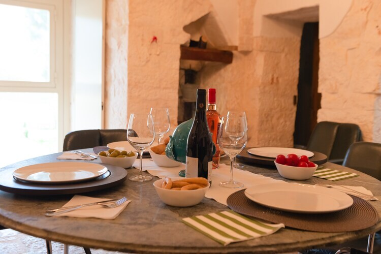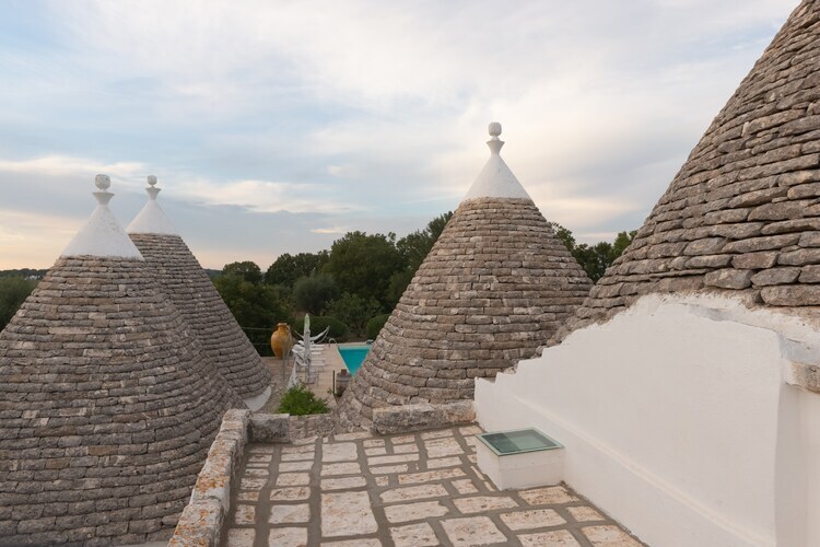 Cette villa trulli en pierre est située au milieu du paysage enchanteur des Pouilles, dans la Vallée d'Itria.