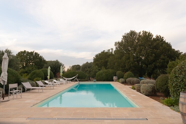 Salle de séjour(TV), cuisine(foyer(gaz), four, réfrigérateur), chambre(lit double), chambre(lit double), chambre(lit double), chambre(lit double), salle de bains(douche, WC, bidet), salle de bains(douche, WC, bidet), salle de bains(douche, WC), cheminée, grill, lave-linge , terrasse, mobilier de jardin, transats, parking, parasol, piscine(privé, extérieur, 15 x 5 m.)