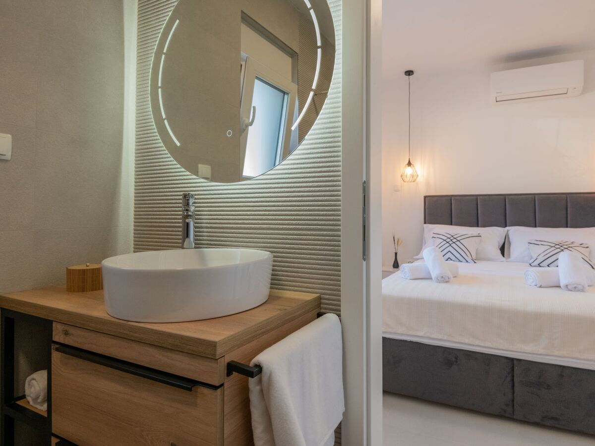 1 chambre avec 1 grand-lit (160 cm, longueur 200 cm), douche/WC et air-conditionné.