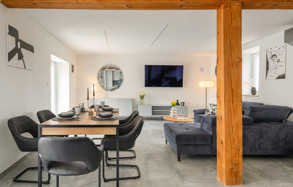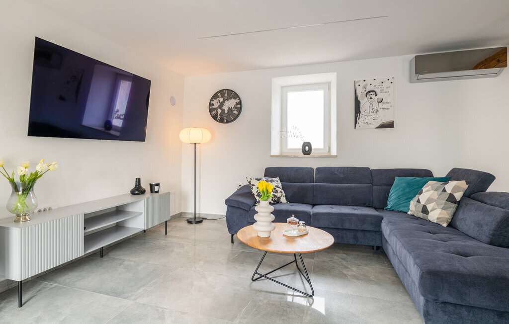 Passez de merveilleuses vacances dans cette belle maison aménagée avec goût dans un petit village près de la ville de Zminj. L'intérieur de la maison vous accueille avec un mélange réussi d'éléments d'origine, comme les poutres en bois et les murs en pierres apparentes, et d'un aménagement élégant et moderne qui vous promet un confort maximal. Vous vous sentirez parfaitement à l'aise sur les deux étages et profiterez de l'ambiance chaleureuse pendant vos vacances.