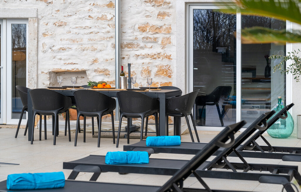 Une maison mitoyenne typique de l'Istrie avec piscine brille d'un éclat moderne.