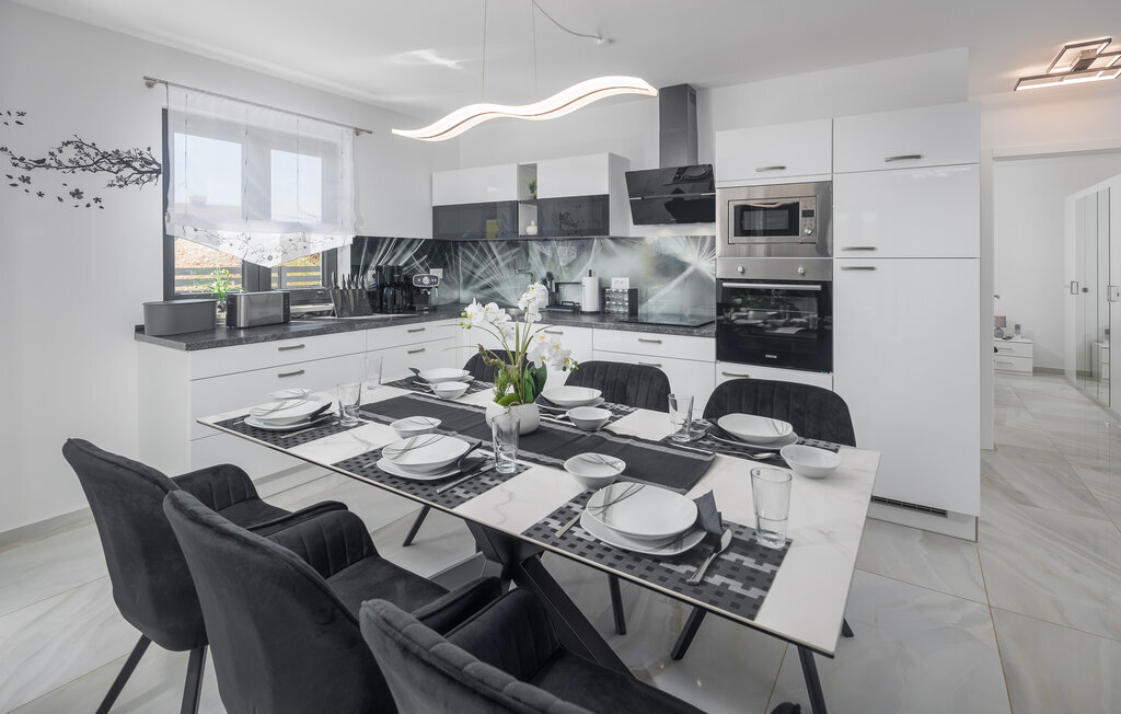 Cette maison de vacances élégante et moderne vous accueille avec un aménagement confortable et un concept réussi de couleurs claires et foncées. Vous pourrez vous y détendre en famille et appeler les chambres réparties sur deux étages votre maison. Au rez-de-chaussée, vous pourrez vous réunir en famille, cuisiner, manger et vous détendre sur le canapé.