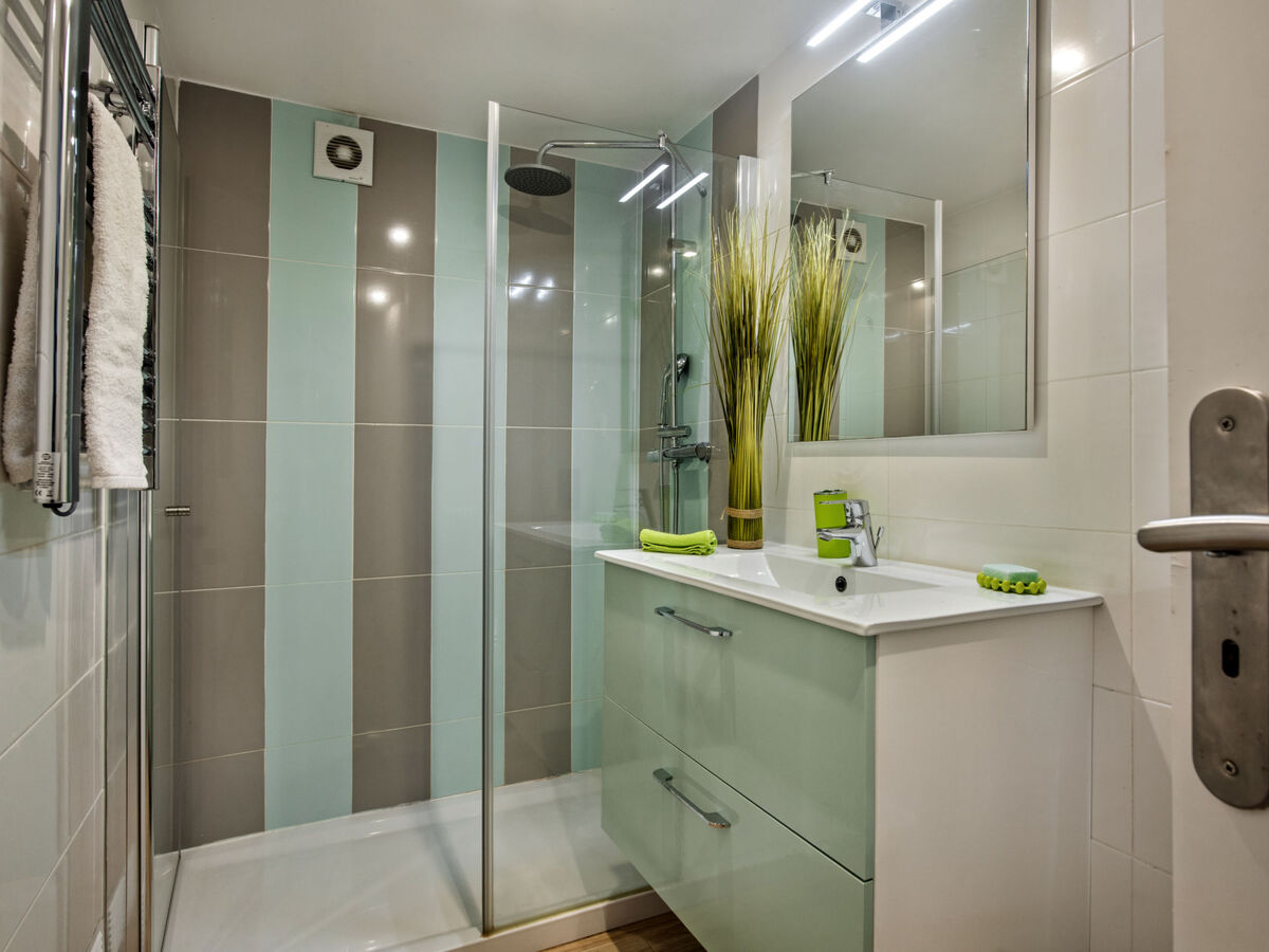 1 chambre avec 3 lits (90 cm, longueur 200 cm), douche/WC, air-conditionné et chauffage à air chaud.