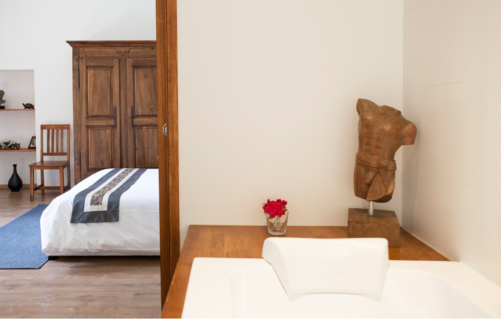 Ce prieuré historique du 9ème siècle, aujourd'hui transformé en prestigieuse maison de vacances, offre une retraite idyllique entre Nîmes et Montpellier. Nichée au milieu des vignes sur un domaine paisible, cette charmante location promet une retraite romantique. Montez par des escaliers en pierre jusqu'à cette élégante oasis. À l'intérieur, découvrez un salon accueillant avec des murs en pierre apparente et des poutres vintage, ainsi qu'un home cinéma pour les soirées de détente. Le coin cuisine bien équipé dispose d'appareils modernes comme une machine à café Nespresso. La chambre à coucher confortable dispose d'un lit double et d'une armoire Louis XV, tandis que la salle de bain luxueuse est équipée d'une baignoire à remous relaxante avec jets de massage, d'une chromothérapie et d'une douche de plain-pied, pour une détente ultime. Les installations extérieures comprennent une buanderie commune, une vue pittoresque sur les vignobles et une piscine commune (12 x 5 m, profondeur : 1,20 m ? 2 m) protégée par une alarme. Bien que la terrasse ne soit pas directement reliée à la location, les hôtes ont à leur disposition un espace privé dans le parc, parfait pour manger en plein air. Pour ceux qui souhaitent des services ou des activités supplémentaires, des séances de massage peuvent être organisées sur place (détails disponibles sur demande). Les promenades à vélo font partie des nombreuses possibilités de loisirs proposées moyennant un supplément. La propriété est située entre Nîmes et Montpellier, près du village de Carnas, à proximité du village médiéval de Sommières. Avec 300 jours de soleil par an, ce paradis du Gard provençal offre des paysages d'une rare beauté : à 30 minutes au sud s'étendent les étangs de Camargue et les plages de sable du Languedoc. À un jet de pierre, le parc national des Cévennes révèle des paysages tout aussi spectaculaires. La région est riche d'un fantastique patrimoine historique : la ville d'Avignon, les villes romaines de Nîmes et d'Arles, le Pont du Gard, le duché d'Uzès, les villes historiques languedociennes de Montpellier, Pézenas, Aigues-Mortes, Sommières et Sauve et une multitude de charmants villages à visiter. Cette location de vacances est un point de départ idéal pour découvrir la Camargue, les Cévennes, le Gard provençal et le Languedoc.