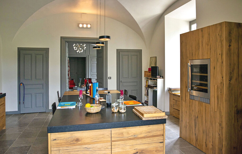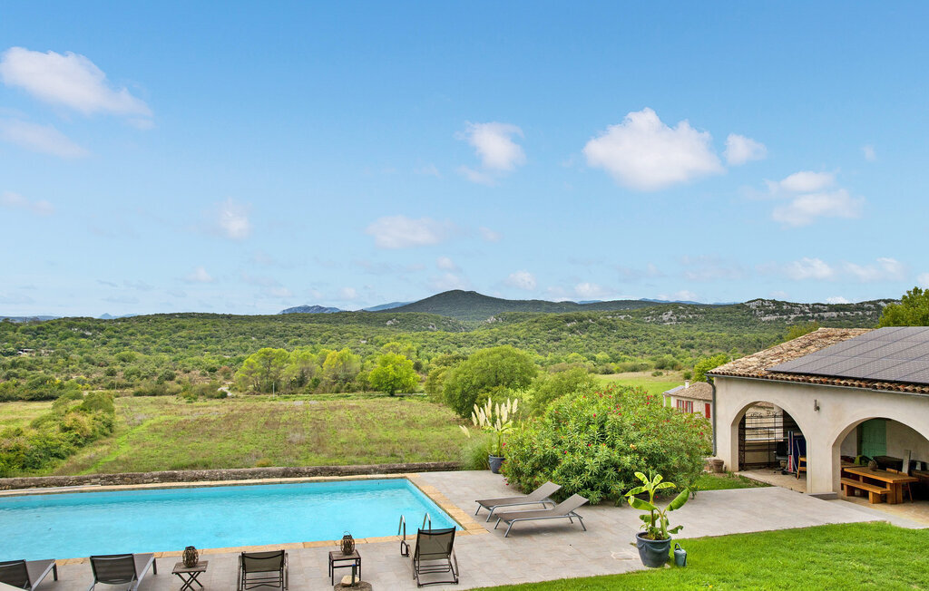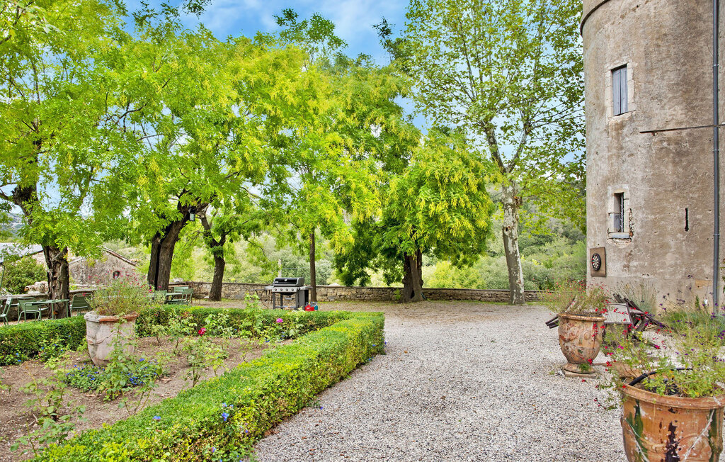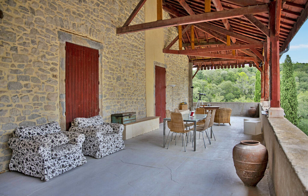 Ce château du 13ème siècle, rénové avec goût, est entouré d'un vaste terrain et offre une vue imprenable sur les Cévennes. Le rez-de-chaussée se compose d'un hall d'entrée menant à un salon lumineux, une cuisine bien équipée, un coin repas, un vestibule avec WC et un petit coin lecture. L'escalier central mène à différentes ailes du château. L'aile gauche comprend une salle de fitness, des chambres à coucher avec une vue pittoresque et une salle de douche. L'aile droite comprend une buanderie, une chambre, une salle de bains et une terrasse couverte avec vue sur la forêt. À l'extérieur, il y a un jardin à la française, plusieurs espaces de détente, une piscine avec terrasse, un pool house, des espaces de divertissement comme un jeu de fléchettes, une table de ping-pong et un potager. Les remarques importantes sont la climatisation de l'aile gauche, l'absence de main courante sur l'escalier en colimaçon et la nécessité d'une surveillance sur la terrasse couverte avec une balustrade basse en raison de son style architectural préservé. Le château est situé dans le Gard à Sauve.