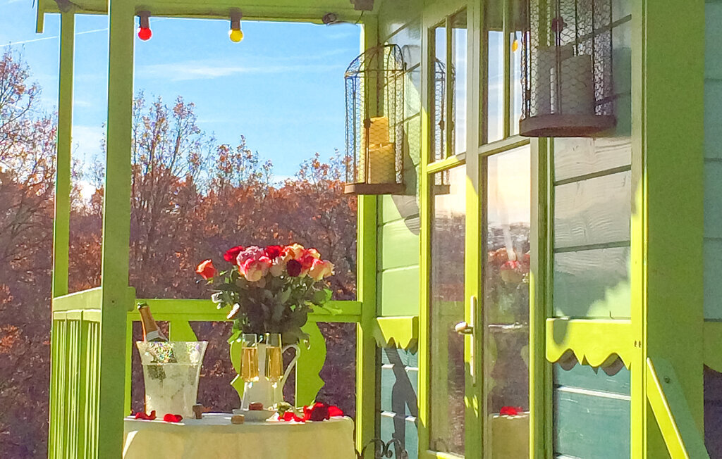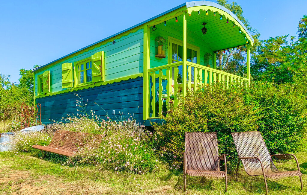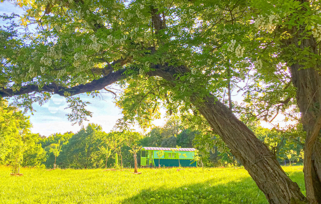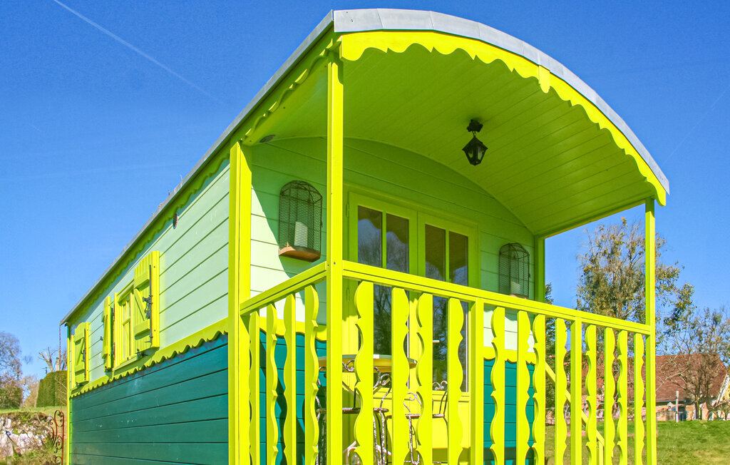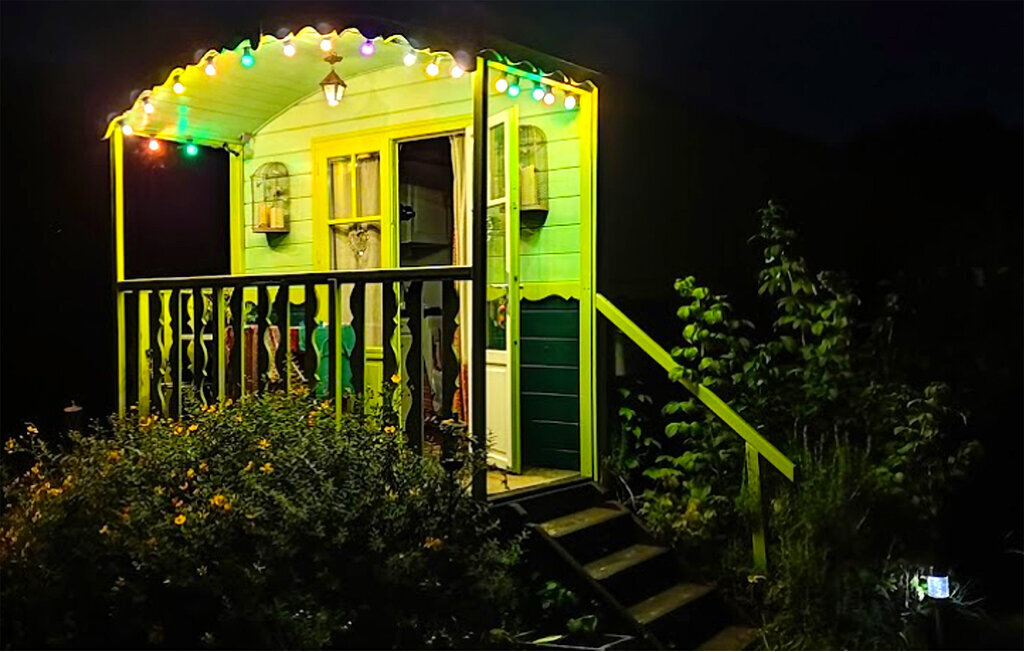 Passez de merveilleuses vacances dans une maison en bois dans le style d'une roulotte de cirque.
