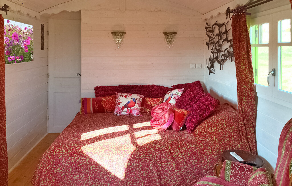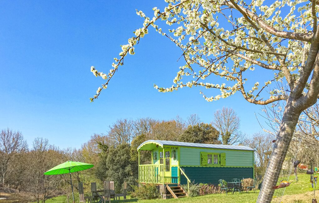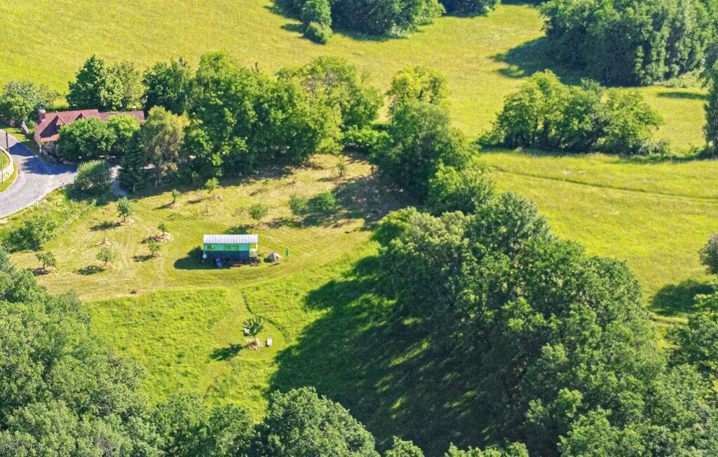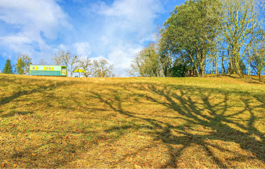 Comme pour les trois autres hébergements saisonniers proposés sur ce domaine de 7 hectares, le seul luxe est l'espace autour, car il est situé dans un paysage très naturel, à l'écart de l'agitation estivale de Sarlat, sur une prairie privée clôturée de 7.000 m². Sur l'un des sommets surplombant la Dordogne, avec une vue dégagée au sud sur le paysage boisé planté de nombreux arbres fruitiers issus de l'agriculture biologique, dont vous pourrez partager les fruits avec les oiseaux et les cerfs.