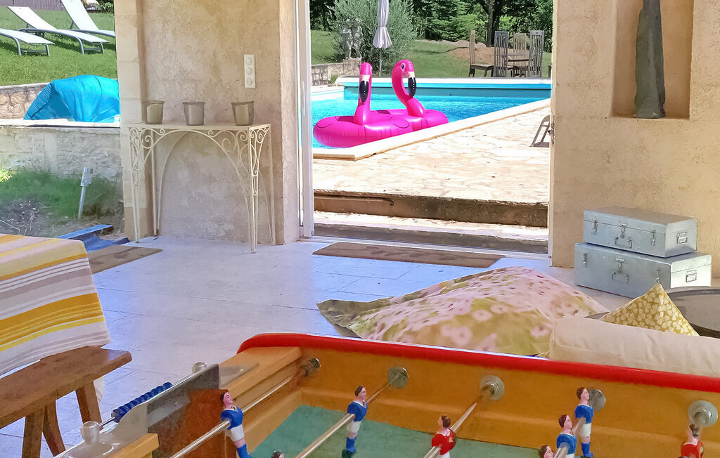 Vous avez libre accès à une piscine de 5 x 12 m chauffée à 30 °C du 15 avril au 31 octobre, à un spa (banquette de massage 2 places) et à un pool house attenant avec des sanitaires communs, une salle de jeux, une kitchenette et une salle à manger d'été. Il y a un terrain voisin de 10.000 m² à 300 mètres, à partager avec jusqu'à une douzaine d'invités. Une machine à laver est également disponible dans la cave de cette ferme principale, où se trouvent également des chiens et des chats.