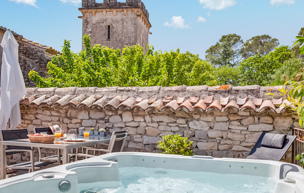 Offrez-vous une escapade romantique à deux au cœur du charme historique d'un ancien prieuré du 9e siècle. Sur un terrain calme entouré de vignobles luxuriants, cette charmante propriété offre une retraite idyllique. Cette délicieuse location dispose d'une entrée accessible par une pittoresque série d'escaliers en pierre. Votre terrasse privée vous accueille et constitue l'endroit idéal pour vous détendre dans l'accueillant jacuzzi tout en profitant du soleil orienté vers le sud. À l'intérieur, découvrez un espace de vie à l'agencement bien pensé. La salle à manger attenante dispose d'une table à manger d'époque Louis XV, idéale pour des repas conviviaux. La cuisine bien équipée dispose de nombreuses commodités modernes. Entrez dans la nature paisible où vous attend un vaste terrain offrant des vues pittoresques sur les vignobles environnants. Profitez d'un bain rafraîchissant dans la piscine commune (12 x 5 m, profondeur de 1,2 m à 2 m), qui est équipée d'une alarme en toute sécurité. Profitez de la détente sur la terrasse. Un jacuzzi isolé de 3 places offre un point de vue paisible sur la tour de la propriété. Prolongez votre expérience en plein air avec le barbecue disponible pour de délicieux repas en plein air. Profitez également de votre temps libre pour faire une partie de pétanque conviviale. La propriété est située entre Nîmes et Montpellier, à proximité du village de Carnas et du village médiéval de Sommières. Avec 300 jours de soleil par an, ce paradis du Gard provençal offre des paysages d'une rare beauté : à 30 minutes au sud s'étendent les étangs de Camargue et les plages de sable du Languedoc. À un jet de pierre, le parc national des Cévennes révèle des paysages tout aussi spectaculaires. La région est riche d'un fantastique patrimoine historique : la ville d'Avignon, les villes romaines de Nîmes et d'Arles, le Pont du Gard, le duché d'Uzès, les villes historiques languedociennes de Montpellier, Pézenas, Aigues-Mortes, Sommières et Sauve et une multitude de charmants villages à visiter. Cette propriété est un point de départ idéal pour découvrir la Camargue, les Cévennes, le Gard provençal et le Languedoc.