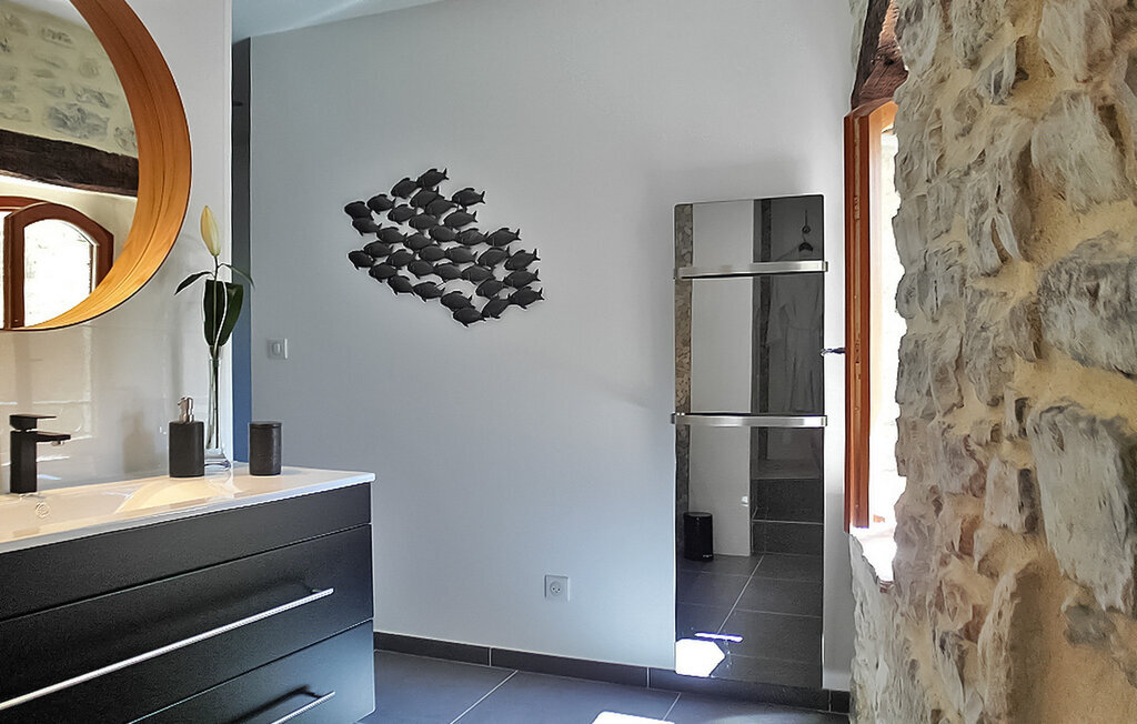 Délectez-vous dans ce gîte pour deux personnes qui vous promet une escapade intime et romantique entre Nîmes et Montpellier. Située dans un ancien prieuré du 9e siècle, cette prestigieuse propriété dispose de six gîtes exquis, chacun conçu sur mesure pour deux hôtes, au cœur d'un domaine paisible entouré de vignes. Cette location respire le luxe et le confort. Le niveau inférieur, au premier étage, vous invite à vous détendre avec style. Admirez le mur de pierres apparentes, détendez-vous sur un canapé en cuir design de Roch & Bobois et profitez de l'immense téléviseur à écran plat visible depuis le lit douillet. Pour vous faire encore plus plaisir, vous pouvez profiter du jacuzzi intérieur à deux places avec buses de massage et chromothérapie. Montez au niveau supérieur par un escalier aérien et vous trouverez une cuisine bien équipée. Entrez dans la charmante terrasse sur le toit avec une vue panoramique, une table pour manger en plein air et deux chaises longues accueillantes. Derrière le logement, explorez le parc communal avec une vue enchanteresse sur les vignobles et profitez de l'eau rafraîchissante de la piscine sécurisée et protégée par une alarme. Participez à d'agréables soirées barbecue avec un barbecue au charbon de bois et profitez d'une partie de pétanque conviviale sur le terrain de jeu. Vivez un lieu de vacances véritablement enchanteur dans ce logement de luxe plein d'opulence, de confort et d'un environnement à couper le souffle. La propriété est située entre Nîmes et Montpellier, près du village de Carnas, à proximité du village médiéval de Sommières. Avec 300 jours de soleil par an, ce paradis du Gard provençal offre des paysages d'une rare beauté : à 30 minutes de la Camargue et des plages de sable du Languedoc. À un jet de pierre, le parc national des Cévennes révèle des paysages tout aussi spectaculaires. La région est riche d'un fantastique patrimoine historique : la ville d'Avignon, les villes romaines de Nîmes et d'Arles, le Pont du Gard, le duché d'Uzès, les villes historiques languedociennes de Montpellier, Pézenas, Aigues-Mortes, Sommières et Sauve et une multitude de charmants villages à visiter. Cette location de vacances est un point de départ idéal pour découvrir la Camargue, les Cévennes, le Gard provençal et le Languedoc.