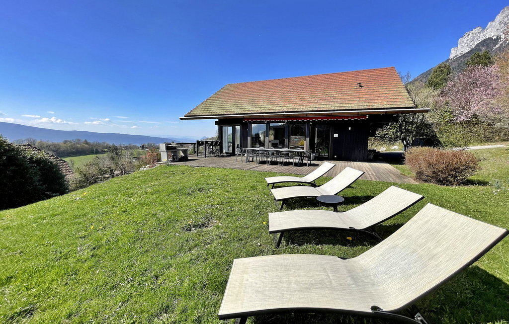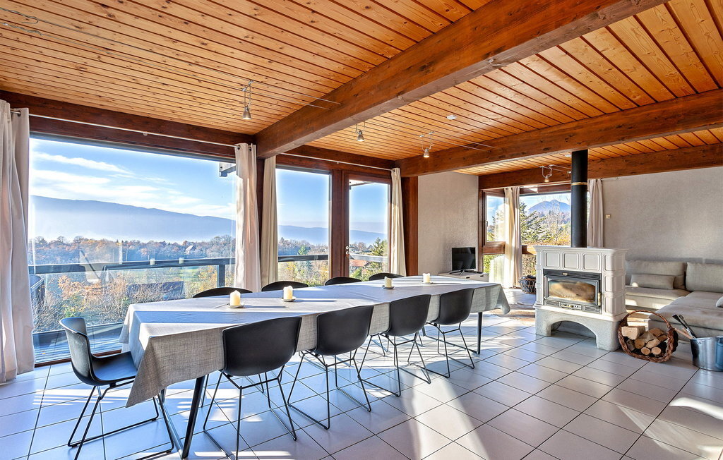 La villa de vacances à Talloires, près du lac d'Annecy, offre un hébergement confortable. Située sur un grand terrain, c'est un lieu idéal pour les amoureux de la nature et les fans de parapente. La proximité des cascades d'Angon, du col de la Forclaz, du lac d'Annecy et des plages de Talloires renforce son attrait. Au rez-de-chaussée, la villa dispose d'un garage pour une voiture, d'une chambre, d'une salle de douche et d'une buanderie équipée des principaux appareils. L'entrée de l'espace de vie donne sur un coin salon confortable avec cheminée, un coin repas avec accès à la terrasse et une cuisine entièrement équipée. En outre, il y a à cet étage une autre chambre à coucher avec trois lits simples, une salle de douche séparée et un WC. Au premier étage, vous trouverez trois chambres à coucher bien équipées, dont chacune offre une vue pittoresque sur les montagnes depuis son balcon respectif. En outre, une salle de bain commune et un WC séparé sont disponibles à ce niveau. À l'extérieur, la villa dispose d'un grand terrain avec une terrasse spacieuse offrant une vue imprenable sur la vallée et les montagnes. Il y a un garage de piscine privé pour une voiture, un parking pour deux voitures et une piscine privée de 12 x 4 m avec couverture de sécurité. Des meubles de jardin et un barbecue complètent l'espace extérieur. La maison est située en amont en direction du Col de la Forclaz : situation idéale comme point de départ pour de nombreuses randonnées à pied ou en VTT. Des navettes gratuites pour la plage circulent tout l'été. Tous les commerces locaux se trouvent à Talloires ou Menthon Saint-Bernard, à environ 6 km. Notez que pour les séjours d'hiver, un équipement de neige est indispensable.