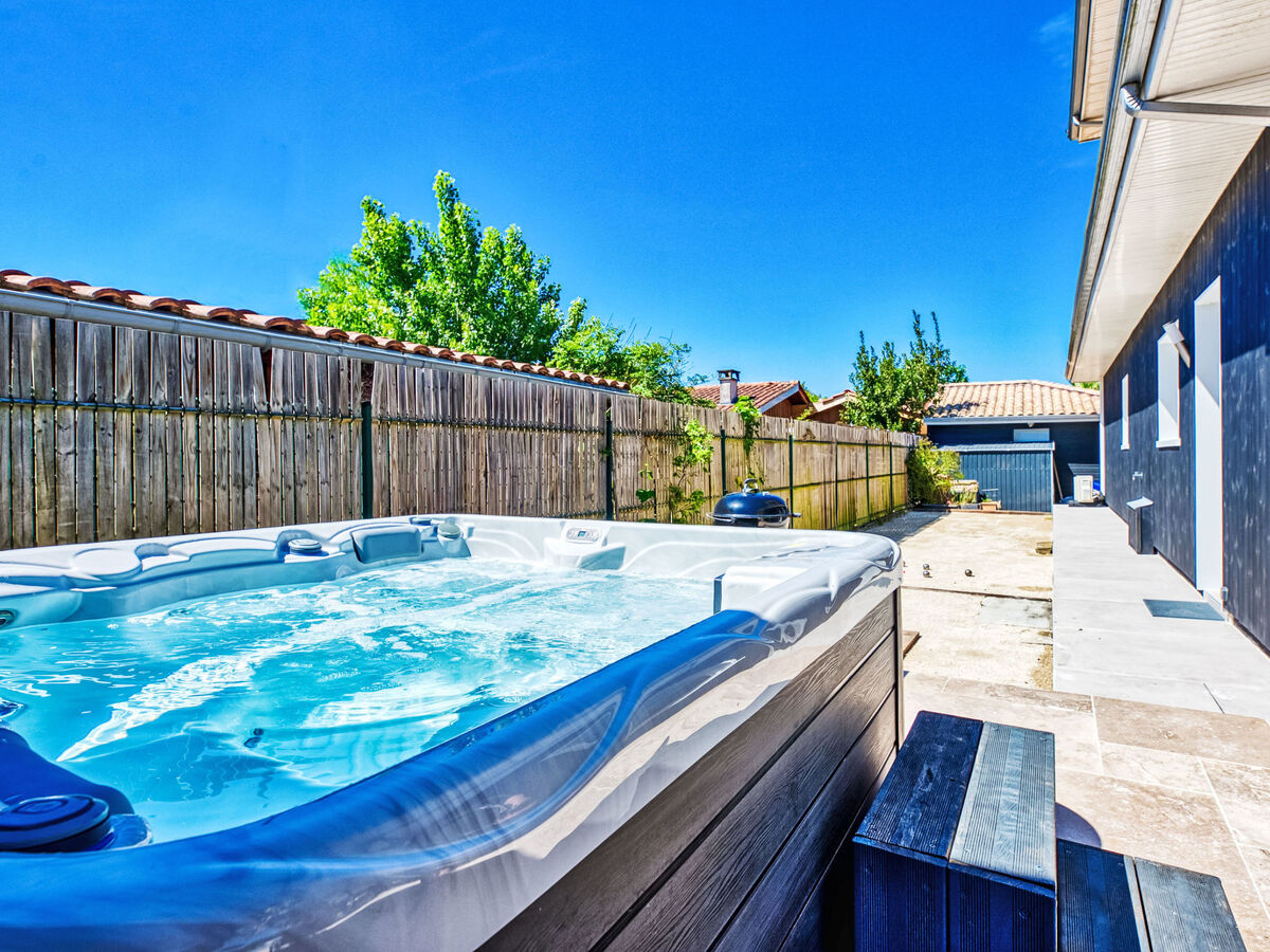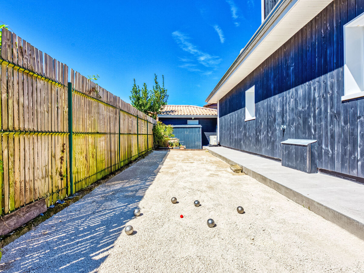 À 3 km du centre de Gujan-Mestras, à 9 km du centre d'Arcachon, à 55 km du centre de Bordeaux, dans un quartier résidentiel, à 150 m de la mer, à 850 m de la plage, accès direct à la lagune, dans une impasse.