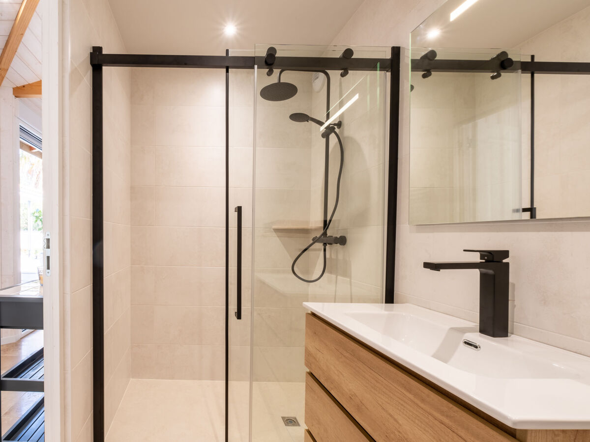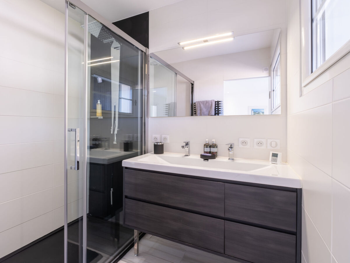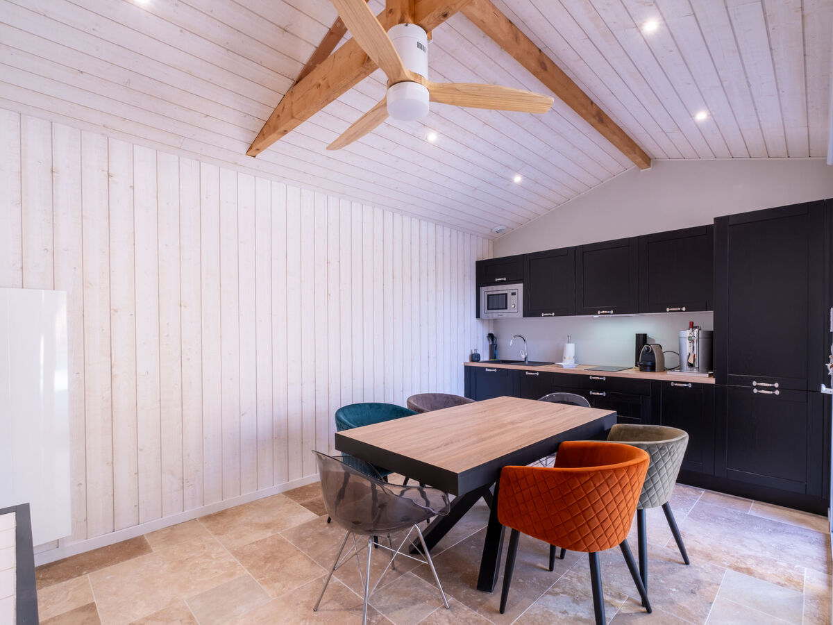 Cuisine ouverte (four, lave-vaisselle, 3 plaques à induction, grille-pain, bouilloire électrique, micro-ondes, congélateur, cafetière électrique).