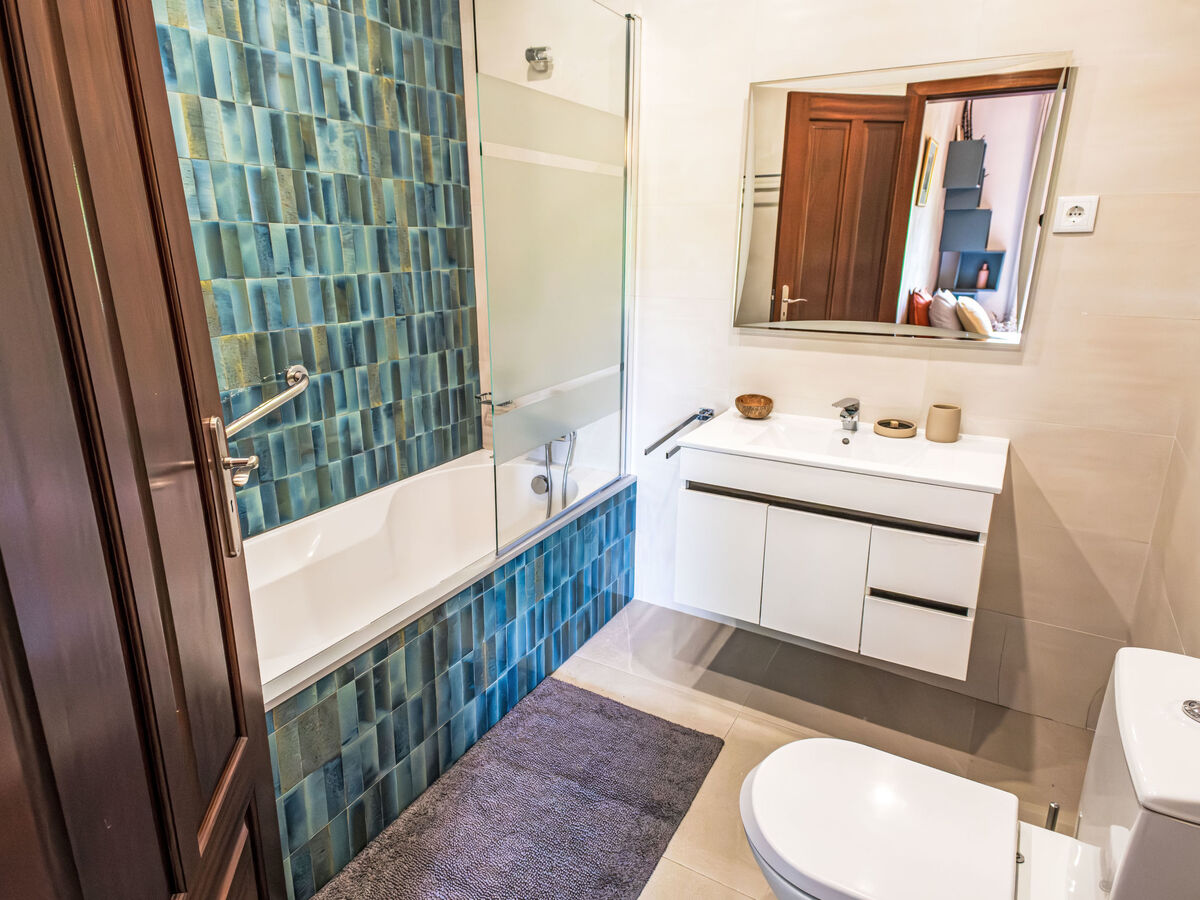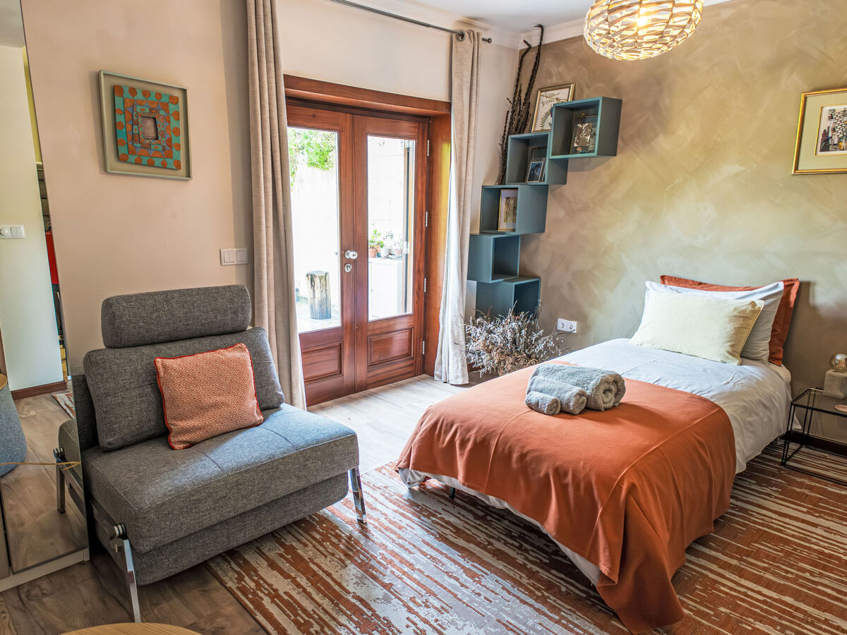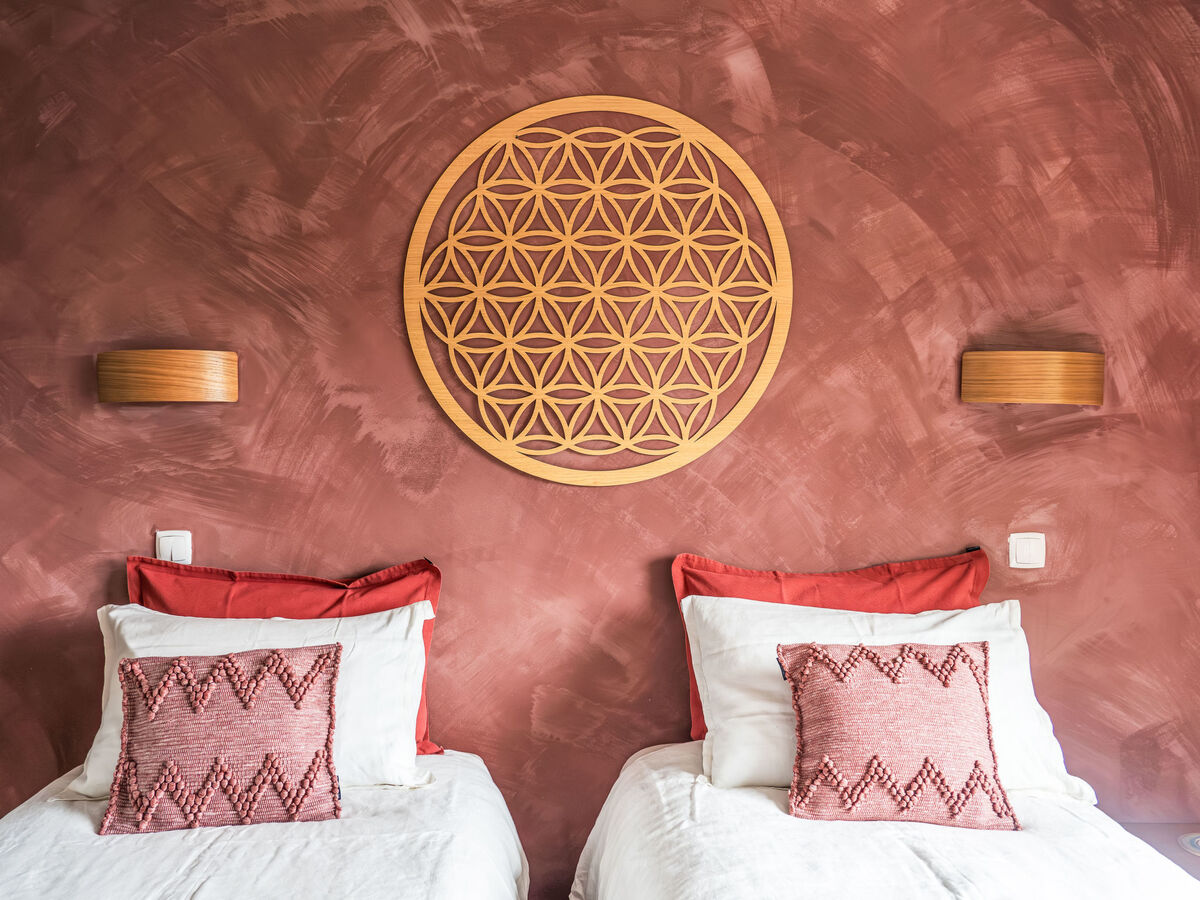 Aménagement très de bon goût et plaisant: 4 chambres, chaque chambre avec: 2 lits (90 cm, longueur 200 cm), douche/WC et radiateur électrique.