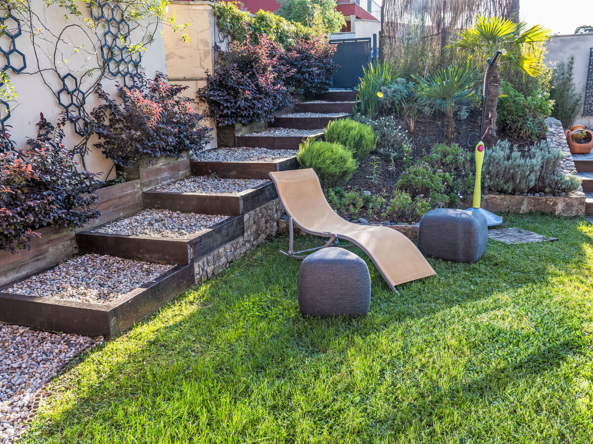 Très belle vue sur les montagnes, la piscine, le jardin et la rivière.