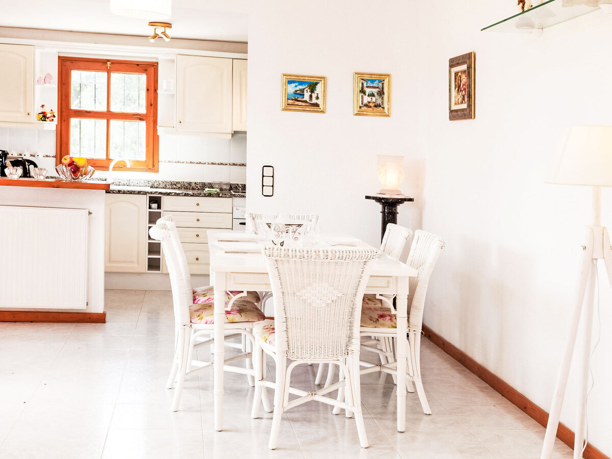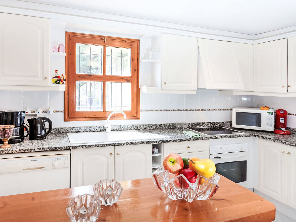 Cuisine ouverte (four, lave-vaisselle, 3 plaques vitrocéramiques, grille-pain, bouilloire électrique, micro-ondes, cafetière électrique).