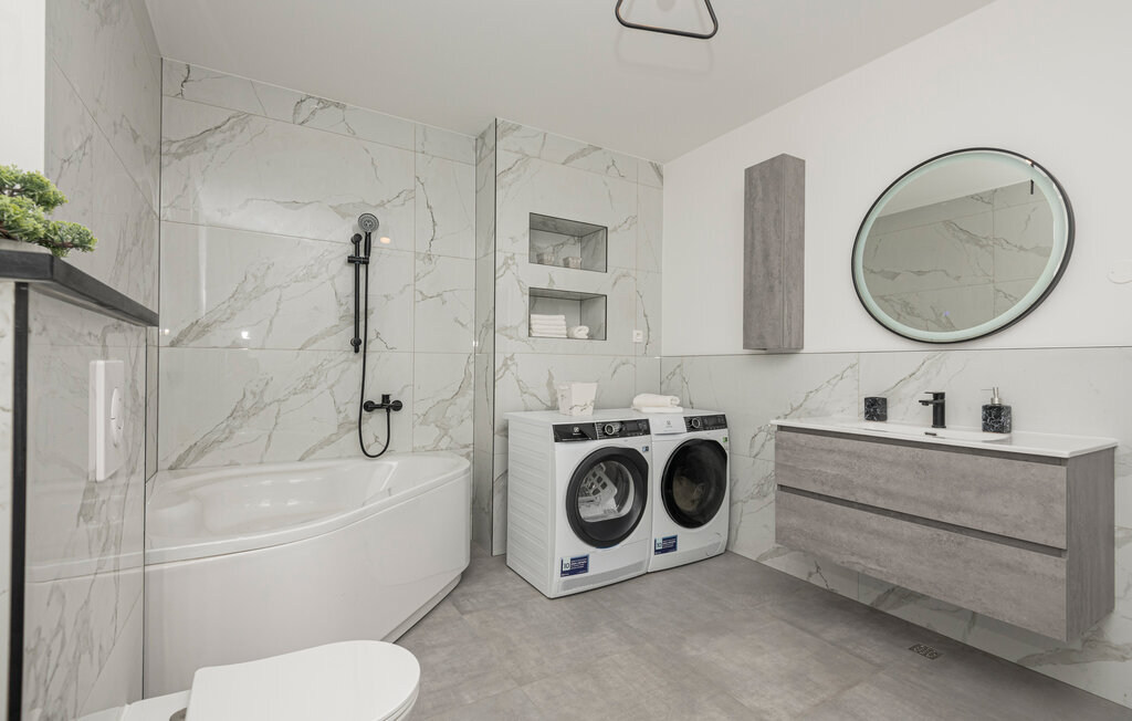 Passez ici des vacances reposantes avec votre grande famille et sentez-vous comme chez vous dans les pièces élégantes et stylées. Les couleurs claires et douces, le design choisi et la décoration soignée en font une maison de vacances fantastique qui comblera tous vos souhaits. Profitez également de l'aménagement et de l'équipement qui, entre autres dans la cuisine, font de la cuisine un plaisir. Découvrez également à l'étage inférieur une salle de séjour traditionnelle avec cuisine séparée, où vous pourrez terminer vos soirées en regardant un film.