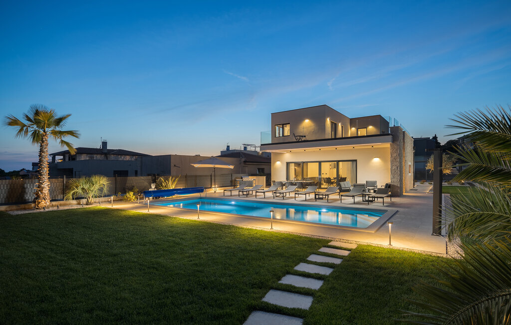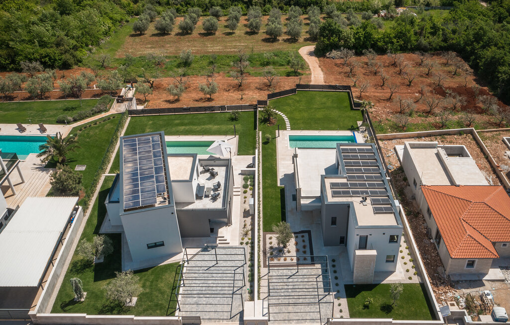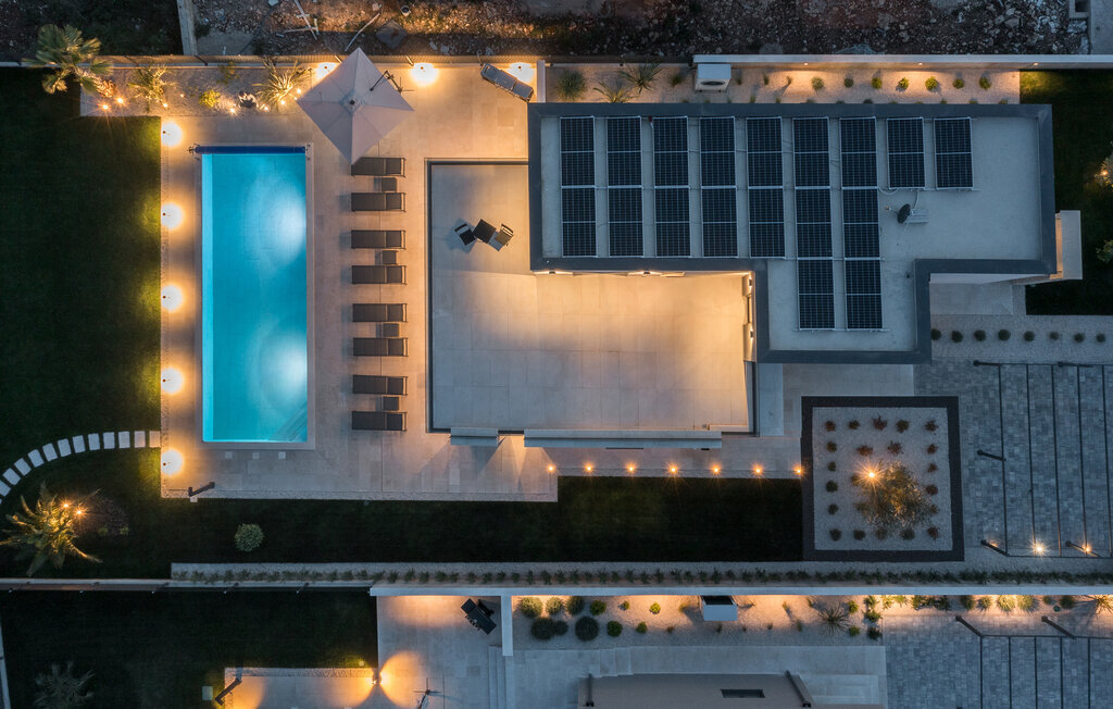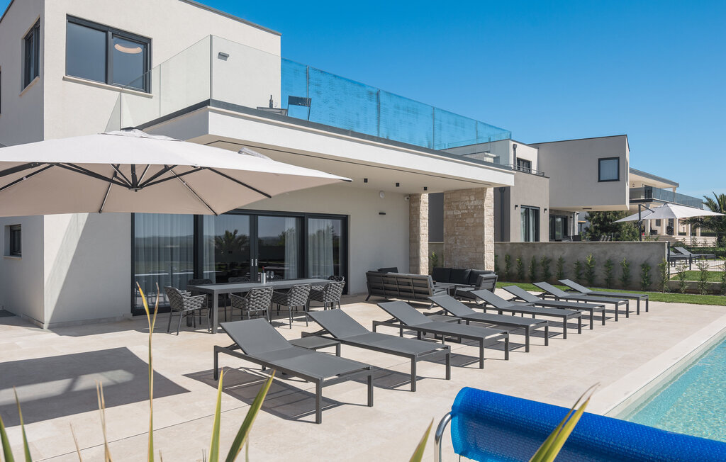 Réjouissez-vous dans cette maison moderne et élégante avec une terrasse sur le toit et une piscine.