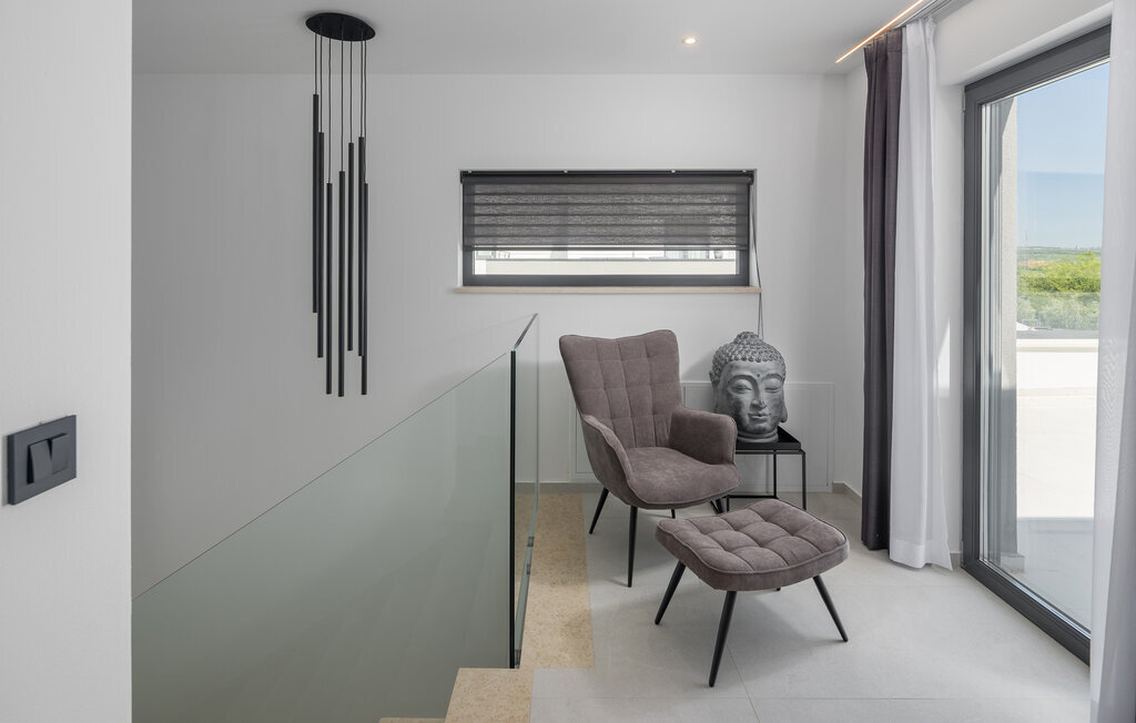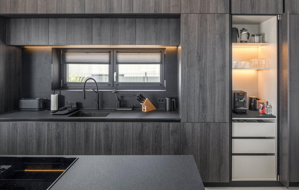 Bienvenue dans cette maison de vacances élégante et moderne, qui vous accueille avec un espace spacieux et un excellent équipement dans un endroit calme. En entrant dans cette magnifique maison, vous remarquerez directement l'interaction entre les meubles confortables et sombres et les couleurs claires des murs. Un sentiment d'élégance s'installe et vous permet de vous reposer. Profitez des deux étages entièrement équipés, y compris la superbe salle de sport où vous pourrez vous adonner à votre programme sportif quotidien.
