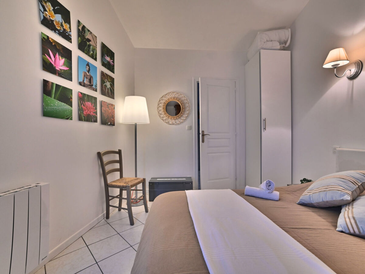 1 chambre avec 1 grand-lit (1 x 140 cm, longueur 190 cm).