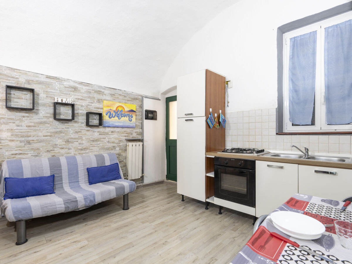 Aménagement agréable et plaisant: séjour/salle à manger avec 1 divan-lit (140 cm, longueur 200 cm), TV.