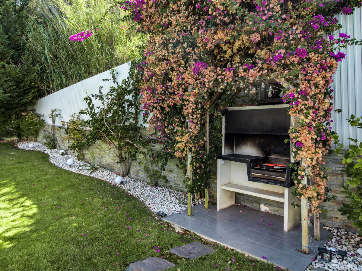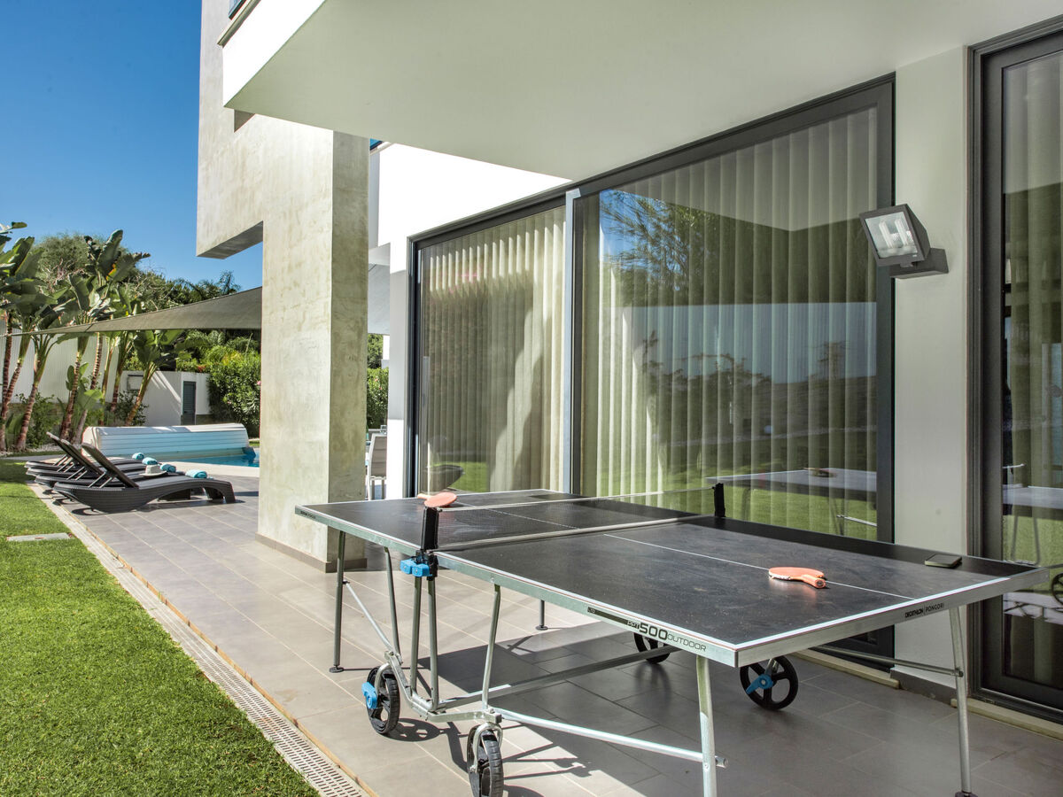 Douche/WC dans l'espace piscine, ping-pong, meubles de jardin, barbecue.