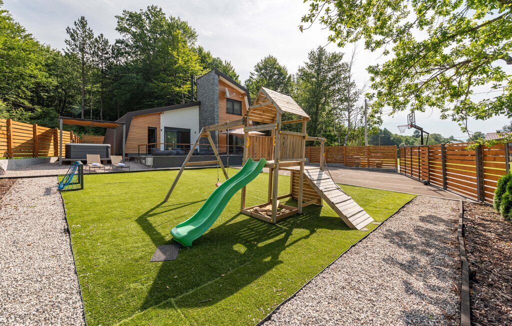 de divertissement, ou à l'extérieur avec des installations de bien-être et de sport pour se détendre. Regardez vos enfants jouer au basket ou sur la tour de jeu pendant que vous vous détendez dans le jacuzzi ou que vous prenez le soleil sur la terrasse.