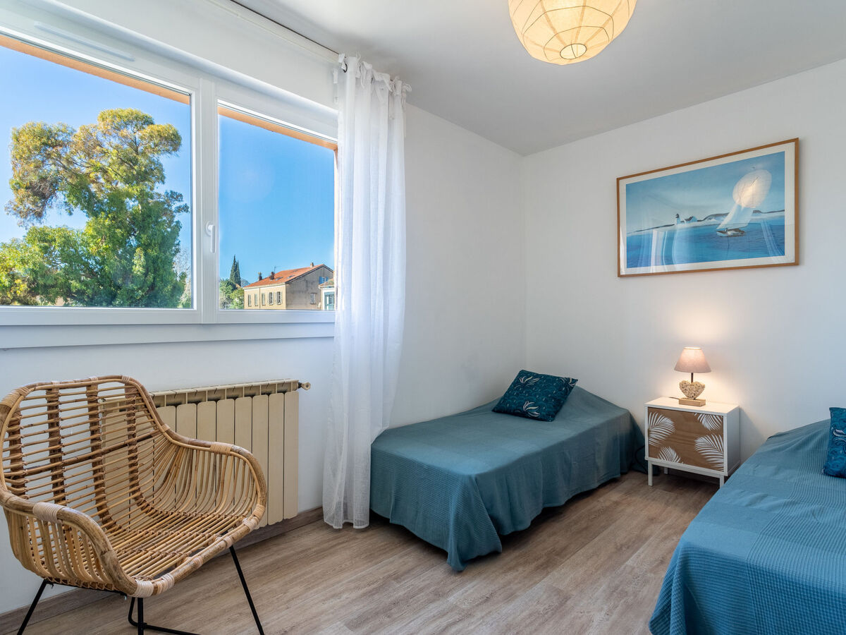 1 chambre avec 2 lits (90 cm, longueur 190 cm), air-conditionné.