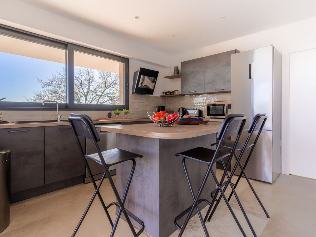 Cuisine (four, lave-vaisselle, 3 plaques à induction, grille-pain, bouilloire électrique, micro-ondes, cafetière électrique).