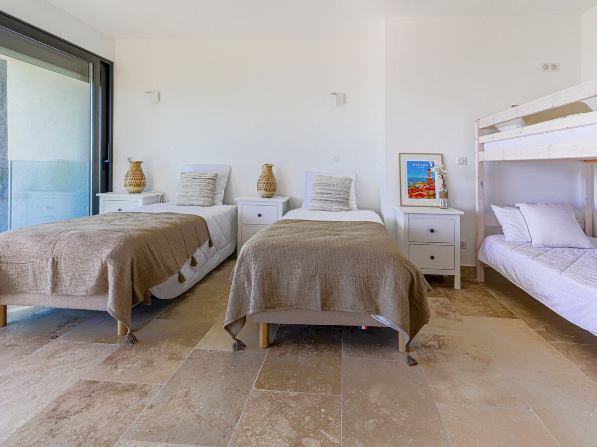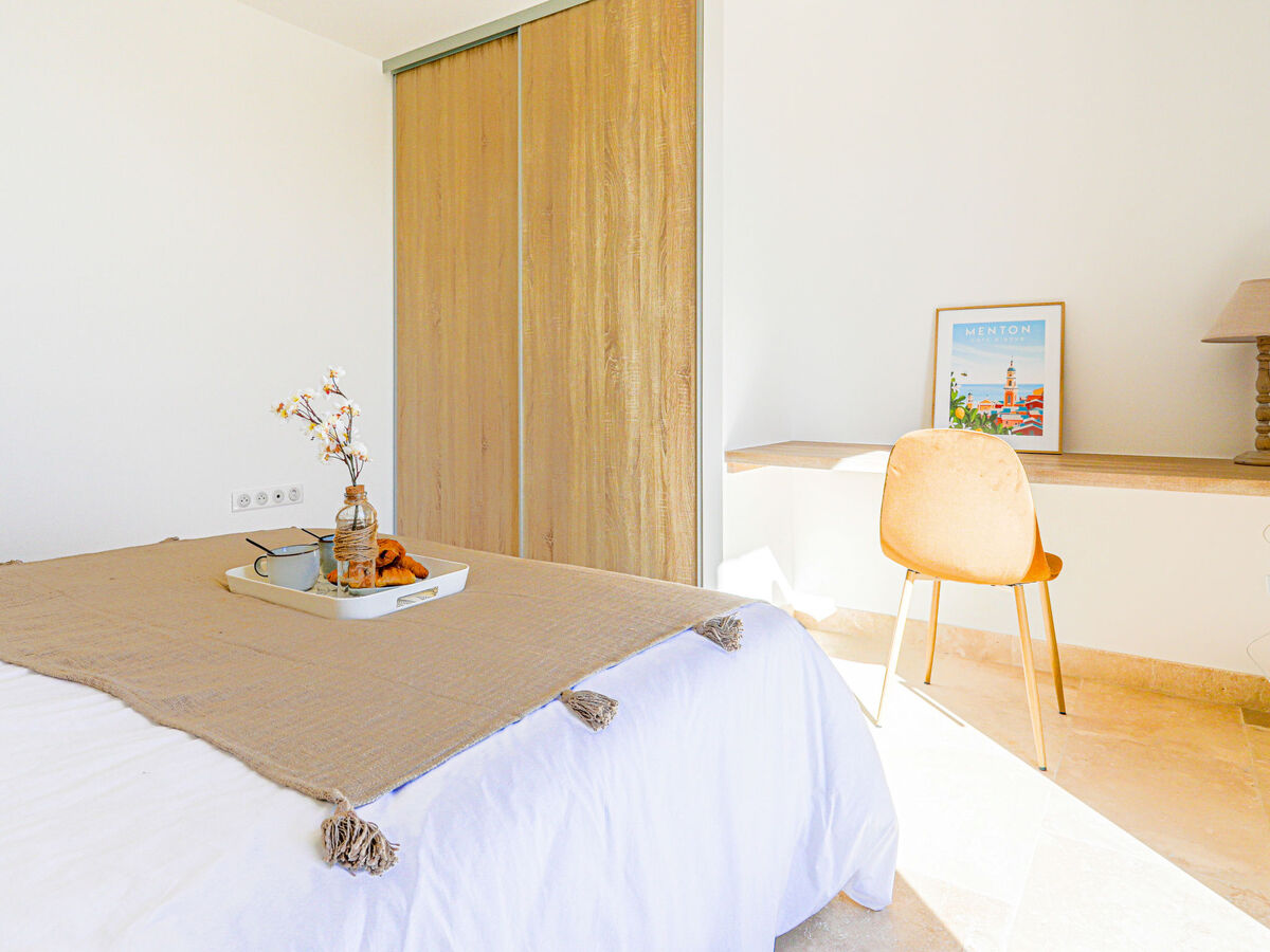 Dans le haut de la station de Roquebrune Cap Martin, à 1.5 km du centre, situation tranquille, ensoleillée dans un quartier résidentiel, à 2 km de la mer, à 2.5 km de la plage.
