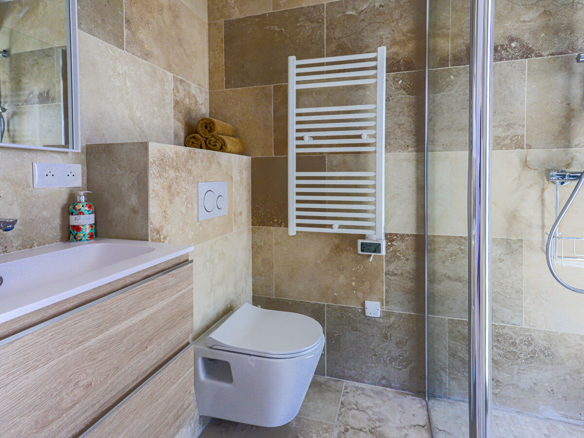 Douche extérieure, terrain de pétanque, place de parking (pour 3 voitures).