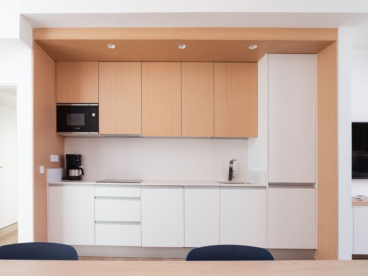 Cuisine (lave-vaisselle, 3 plaques vitrocéramiques, micro-ondes, congélateur, cafetière électrique).
