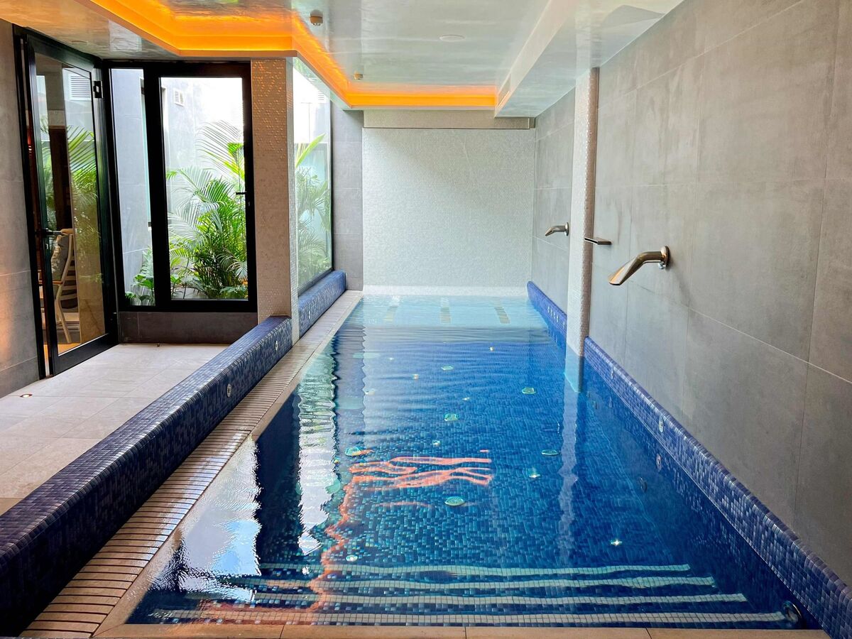 Sortie sur le jardinet, sur la piscine.